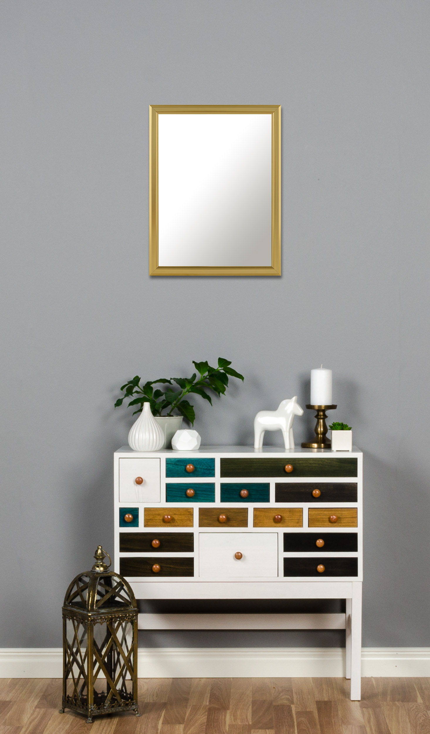 Σκοπεύετε να συνδυάσετε χρυσά κορνίζες και άλλα στοιχεία διακόσμησης με έναν χρυσό καθρέφτη; Τότε έχουμε μια σειρά από όμορφα σχέδια για να διαλέξετε! Αυτό συγκεκριμένα έχει ένα ευχάριστο προφίλ με διακριτικές ρίγες που αλλάζουν σε διάφορες χρυσές αποχρώσεις.