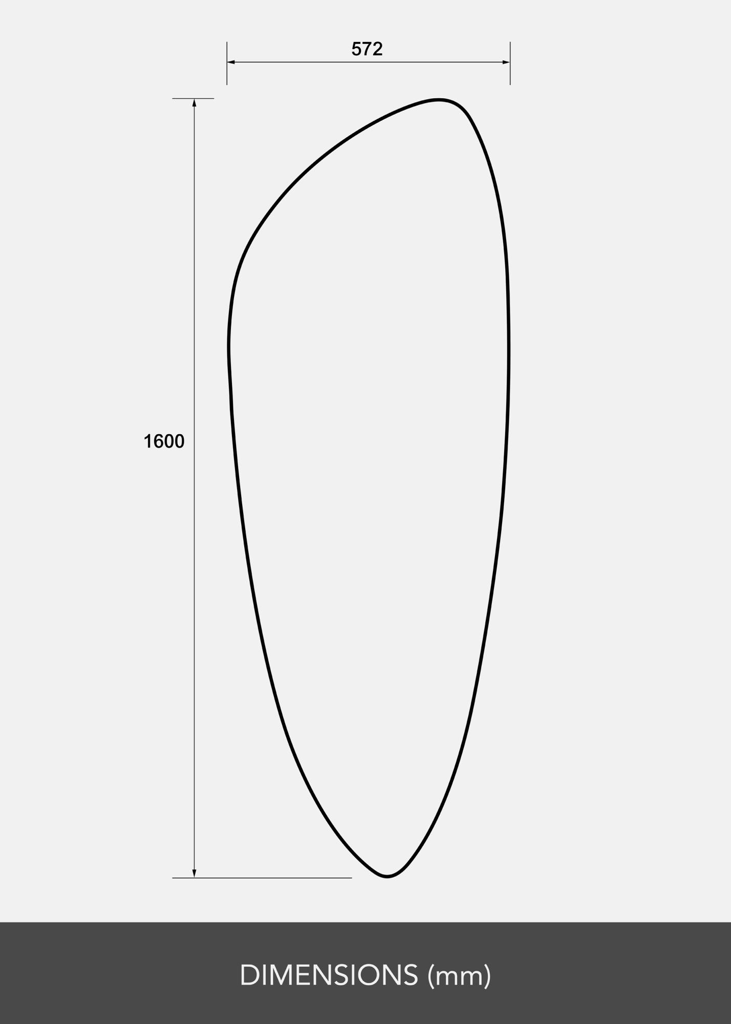 Ανακαλύψτε τη μοναδική γοητεία του επιμήκους καθρέφτη μας, έναν τέλειο συνδυασμό λειτουργικότητας και αισθητικής. Με τις γενναιόδωρες διαστάσεις του 57x160 cm, αυτός ο καθρέφτης προσφέρει μια αντανάκλαση πλήρους μήκους που είναι ιδανική για υπνοδωμάτια, διαδρόμους ή γκαρνταρόμπες. Ο καθρέφτης διαθέτει μια κομψή, επιμήκη σταγόνα σχήματος που προσδίδει ένα σύγχρονο και απαλό χαρακτήρα στο δωμάτιο, και το γκριζωπό καθρέφτη γυαλί προσθέτει μια σοφιστικέ και μοντέρνα πινελιά που εναρμονίζεται με μια ποικιλία στυλ διακόσμησης.