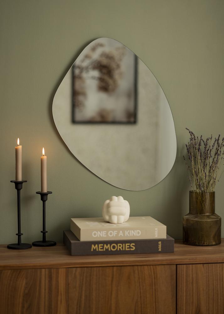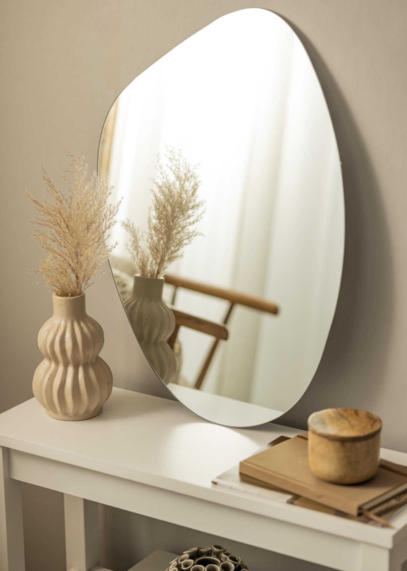 Αυτός ο καθρέφτης έχει μια μινιμαλιστική έκφραση, με έναν σχεδιασμό χωρίς πλαίσιο και ένα λεπτό γυαλί καθρέφτη. Είναι 50x60 cm και εύκολη στην τοποθέτηση στον τοίχο, χάρη στο στήριγμα τοίχου στο πίσω μέρος του καθρέφτη.