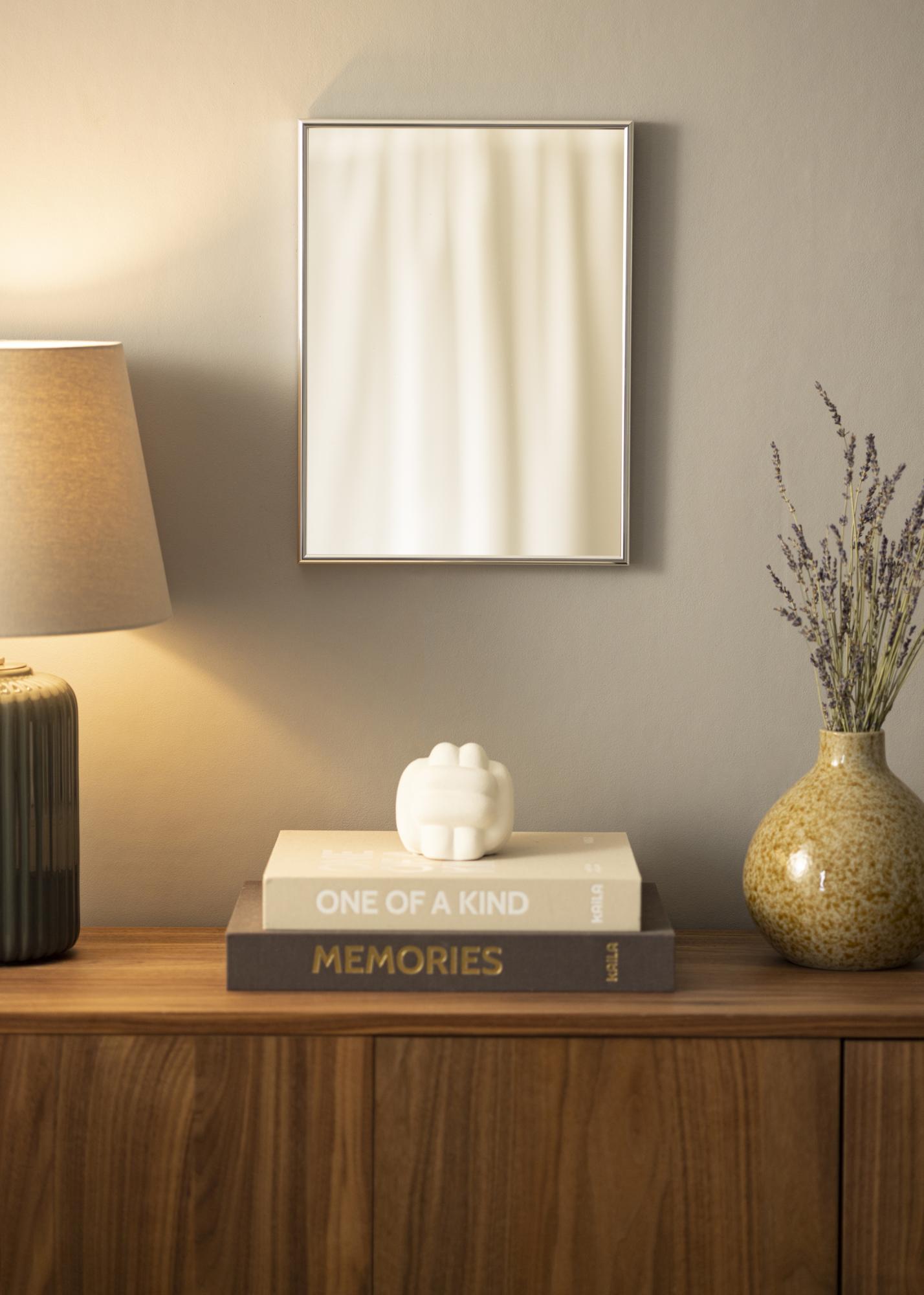 Το Sandhamn δίνει στον καθρέφτη σας ένα αποκλειστικό περιθώριο με το γυαλιστερό ασήμι βουρτσισμένο προφίλ του με βάθος 26 χιλιοστών που κάνει τον καθρέφτη σας να βγαίνει λίγο από τον τοίχο.