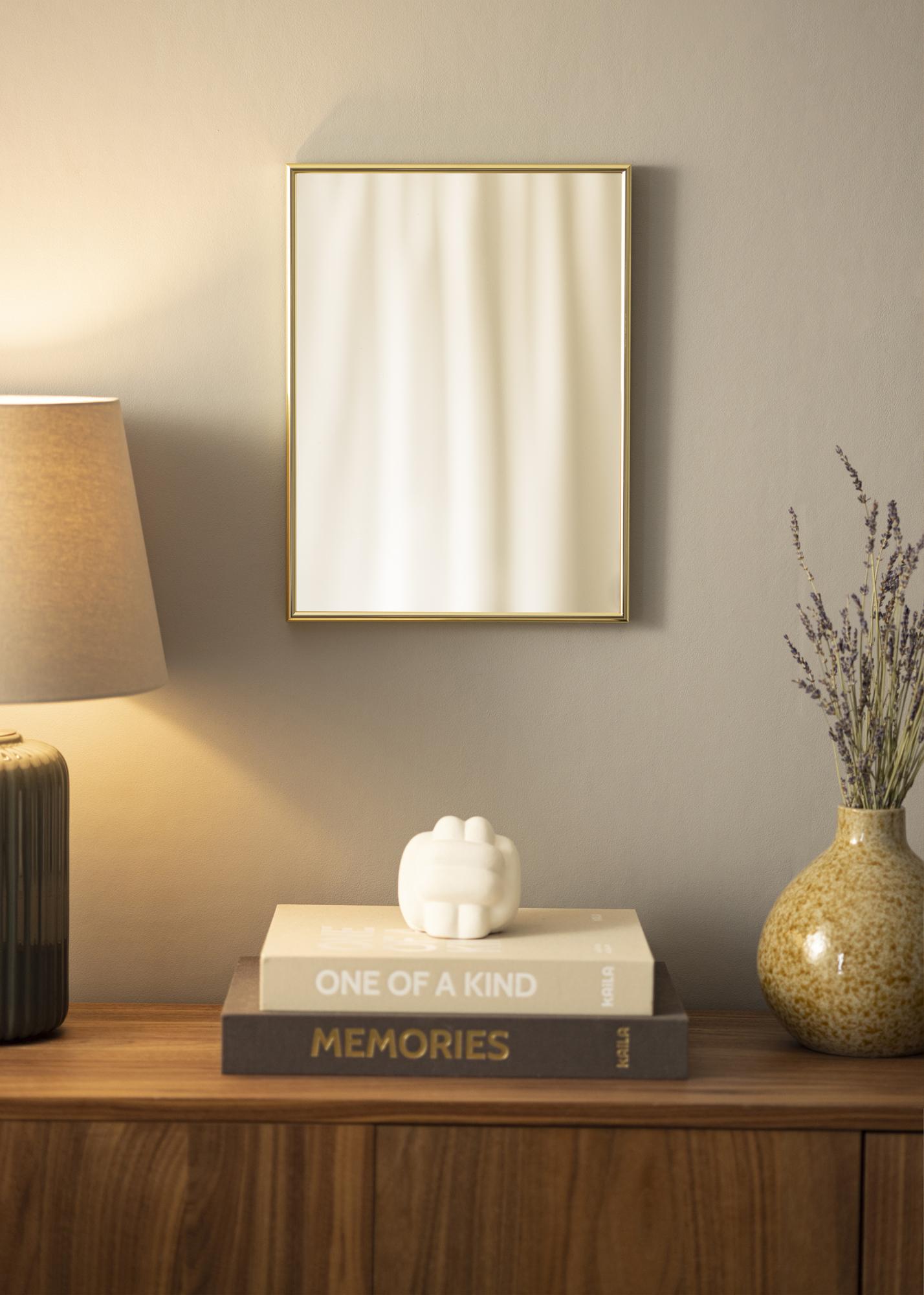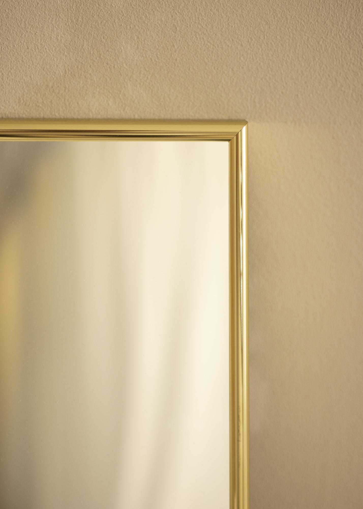 Sandhamn δίνει στον καθρέφτη σας μια αποκλειστική κορνίζα με το λαμπερό χρυσό χρώμα της βουρτσισμένης προφίλ με βάθος 26 χιλιοστών που κάνει τον καθρέφτη σας να προεξέχει από τον τοίχο.