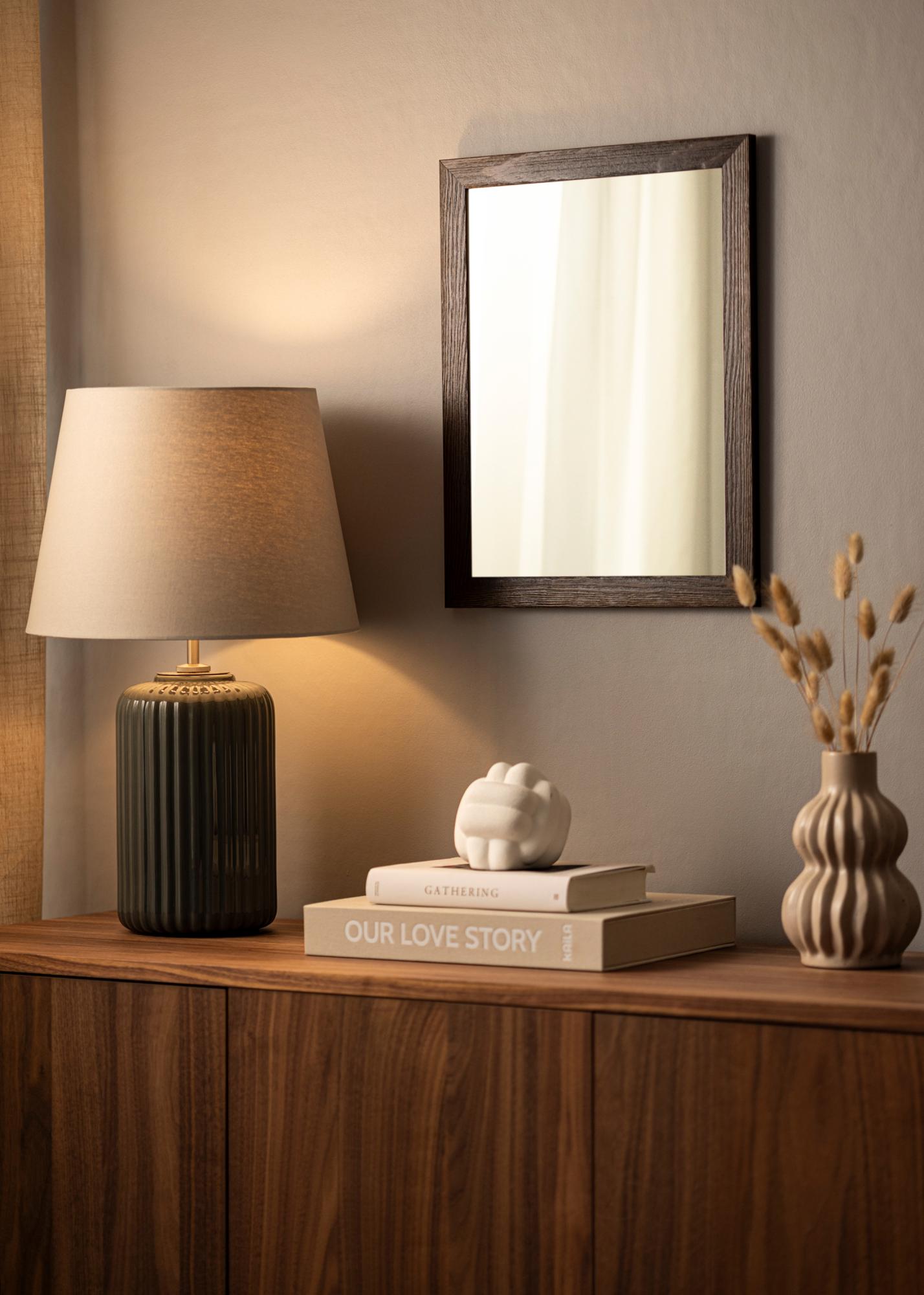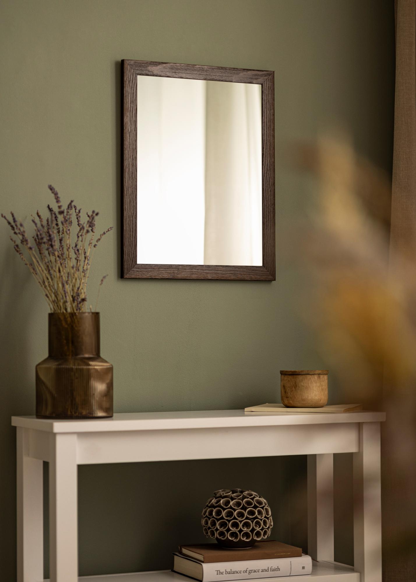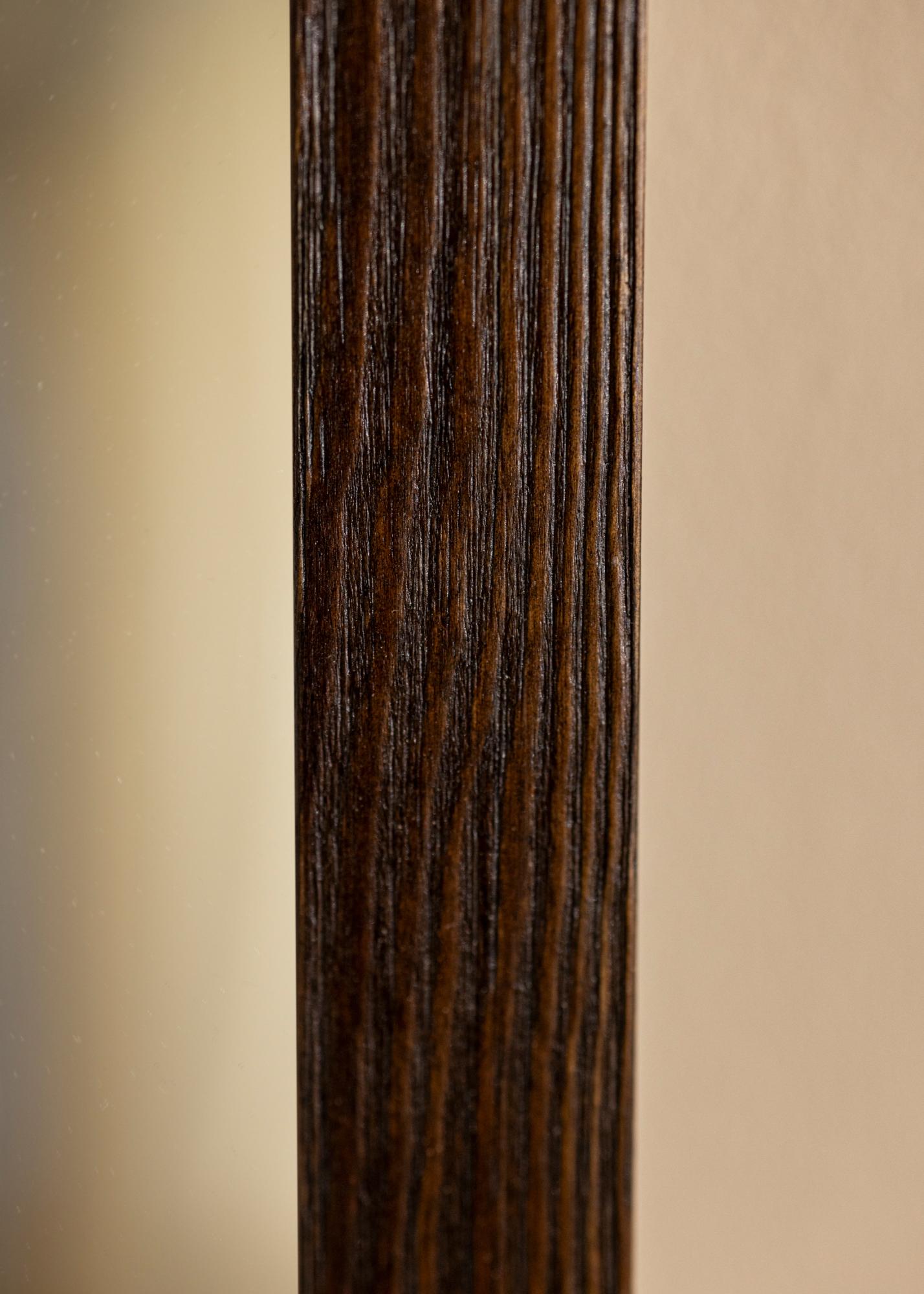 Στιβαρό καφέ πλαίσιο καθρέφτη με εμφανή νερά ξύλου με φαρδύ προφίλ. Ταιριάζει καλά όταν ψάχνετε για ένα σκουρόχρωμο ξύλινο πλαίσιο με φυσική αίσθηση.