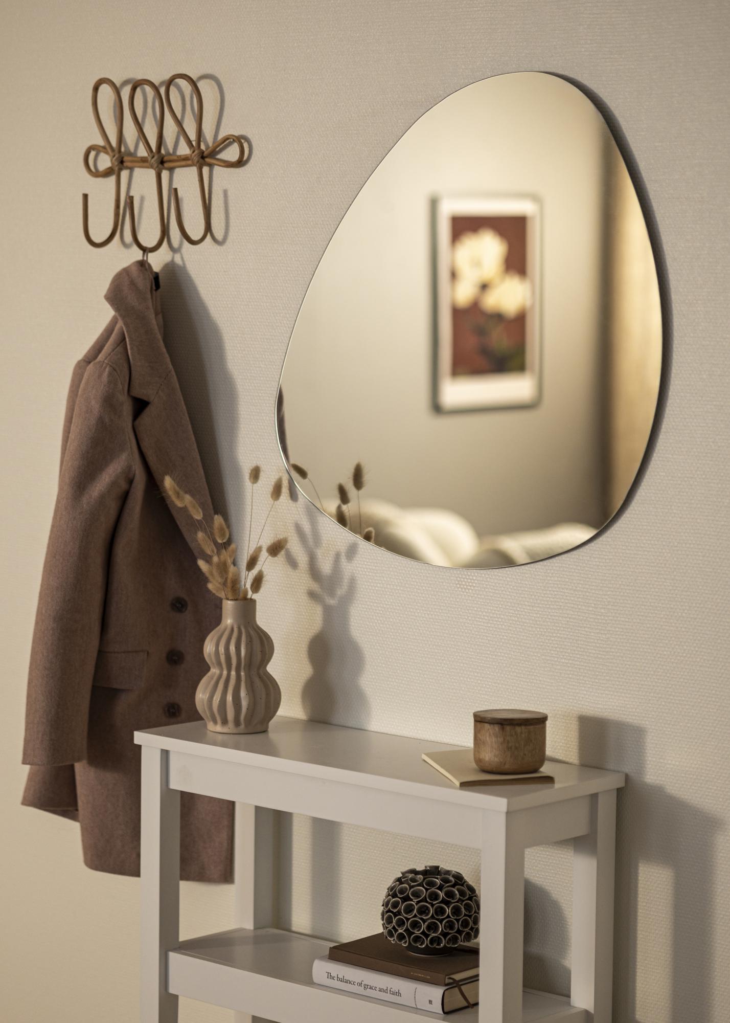 Ανακαλύψτε μια μοναδική λεπτομέρεια για το σπίτι σας με τον ασύμμετρο καθρέφτη μας, ένα σχέδιο που σπάει την παράδοση και εισάγει μια αίσθηση ροής και απαλότητας στο χώρο. Με τις καμπύλες γραμμές του, ο καθρέφτης προσφέρει μια αρμονική και ισορροπημένη αίσθηση, ιδανική για να δημιουργήσει ένα ενδιαφέρον οπτικό αποτέλεσμα στον τοίχο. Το μέγεθός του, 70x70 cm, το καθιστά ιδανική προσθήκη τόσο για μικρούς όσο και για μεγάλους χώρους.