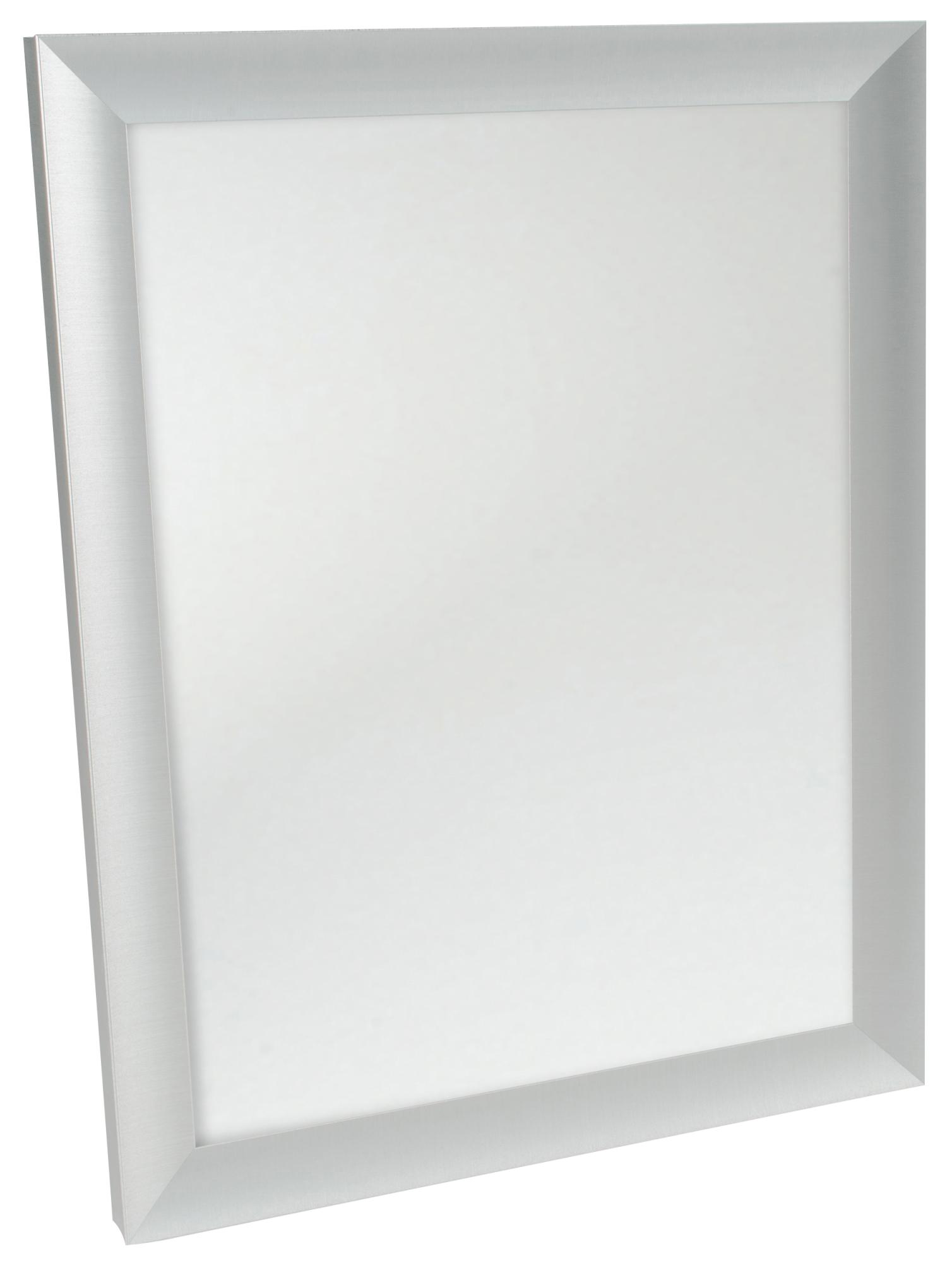 Καθρέφτης με κομψό πλαίσιο από αλουμίνιο σε ημίματ ασημένια απόχρωση, κατασκευασμένος στη Γερμανία. Η κομψή έκφραση και η διακριτική ασημένια απόχρωση του καθρέφτη τον καθιστούν κατάλληλο για όλα τα είδη διακόσμησης και περιβάλλοντα, αλλά φαίνεται ιδιαίτερα καλός σε απαλές αποχρώσεις ή σε ένα περιβάλλον με αποχρώσεις μόνο από την γκρι κλίμακα. Συνδυάστε τον καθρέφτη με πίνακες με πλαίσια σε ασημί, μαύρο ή λευκό ή τοποθετήστε τον πάνω από μια όμορφη κονσόλα ως κέντρο προσοχής.