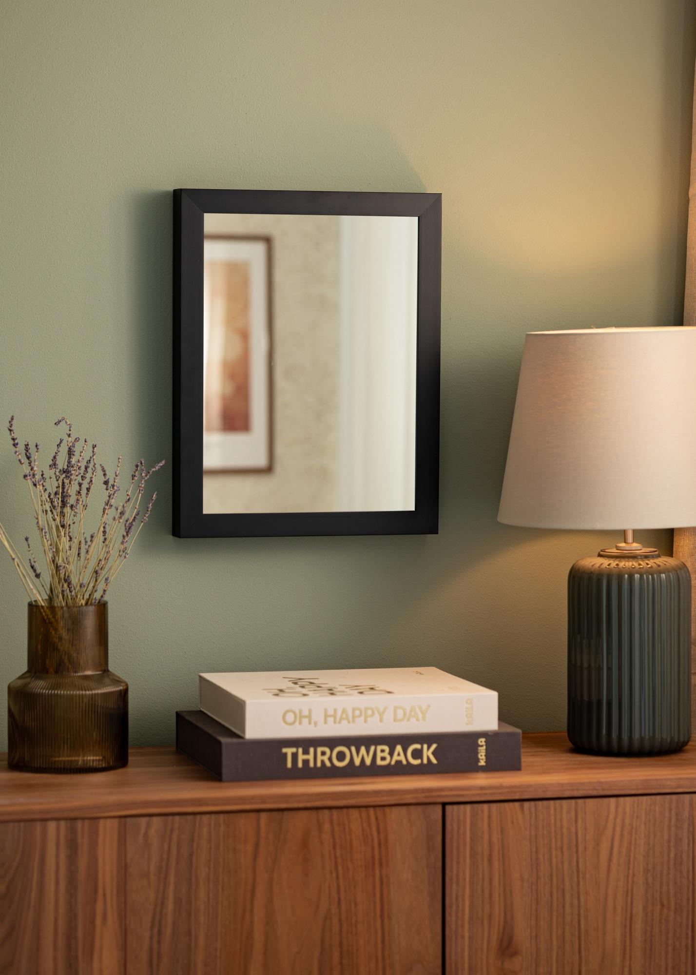 Αυτός ο καθρέφτης έχει ένα κομψό μαύρο χρώμα που προσδίδει μια σοφιστικέ και στυλάτη εντύπωση σε οποιοδήποτε δωμάτιο κι αν τοποθετηθεί. Η 30 χιλιοστών ευρεία πλαίσιο περιβάλλει τον καθρέφτη με γούστο και συμβάλλει στη μοντέρνα εμφάνισή του. Με βάθος 50 χιλιοστών, ο καθρέφτης αποκτά μια στιβαρή αίσθηση, ενώ διατηρεί την κομψότητά του.