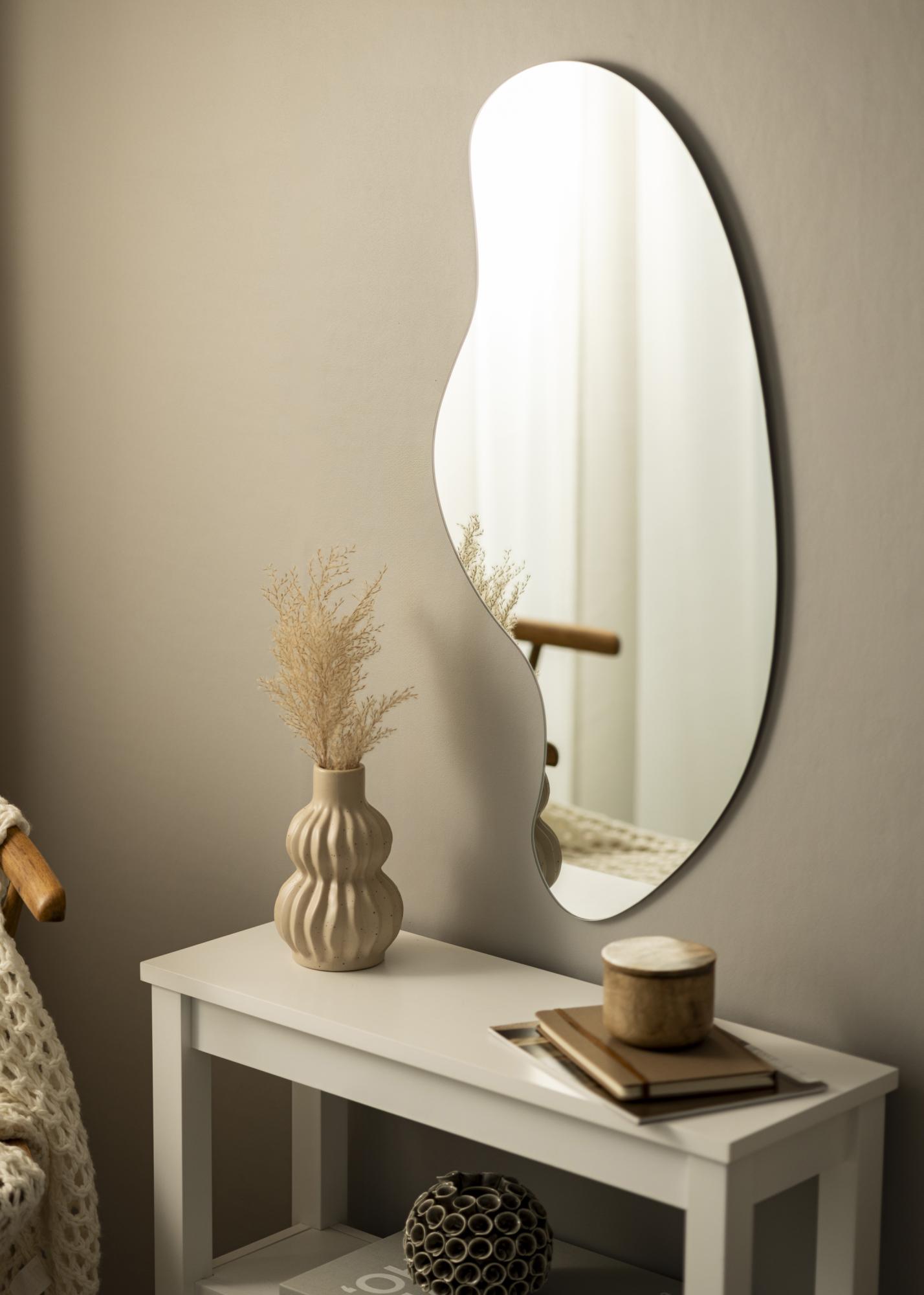 Wavy Cloud είναι ένας καθρέφτης με μοναδικό σχέδιο και υψηλή κομψότητα – ιδανικός για όσους αναζητούν μια προσωπική λεπτομέρεια διακόσμησης. Η ειδική σχεδίαση, με μια κλασικά στρογγυλευμένη πλευρά και μια πλευρά με κυματιστό σχήμα, δημιουργεί ένα κομψό σύνολο. Ο καθρέφτης δεν έχει πλαίσιο και διαθέτει ένα λεπτό τζάμι καθρέφτη μόλις 4 χιλιοστά, που αυξάνει περαιτέρω την αίσθηση κομψότητας. Αυτός ο καθρέφτης τοίχου είναι μεγέθους 40x80 εκ.
