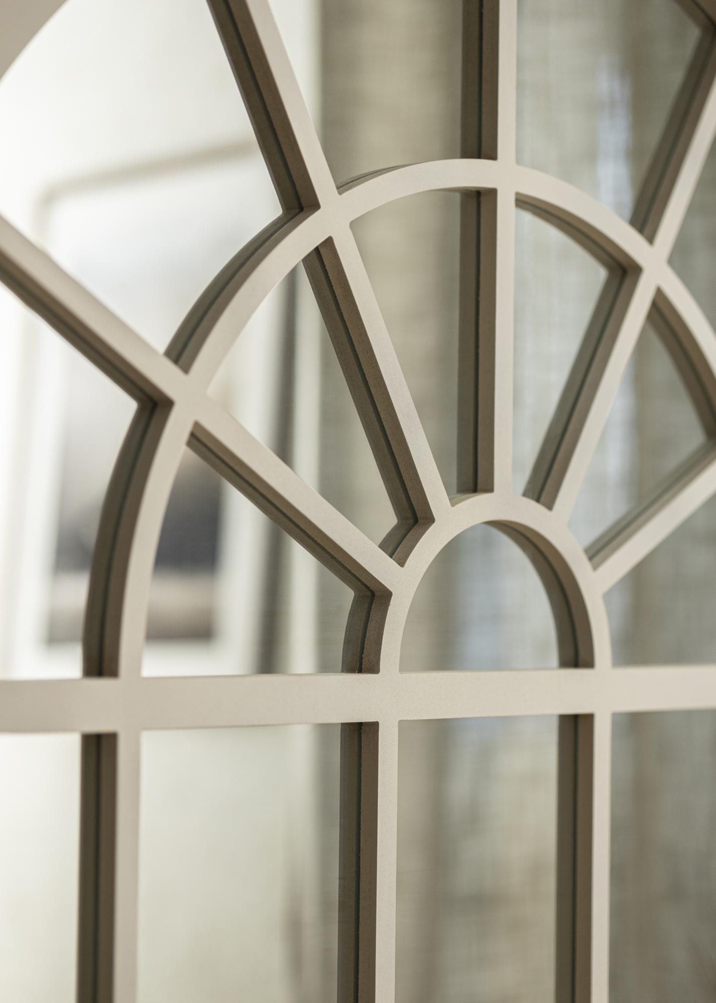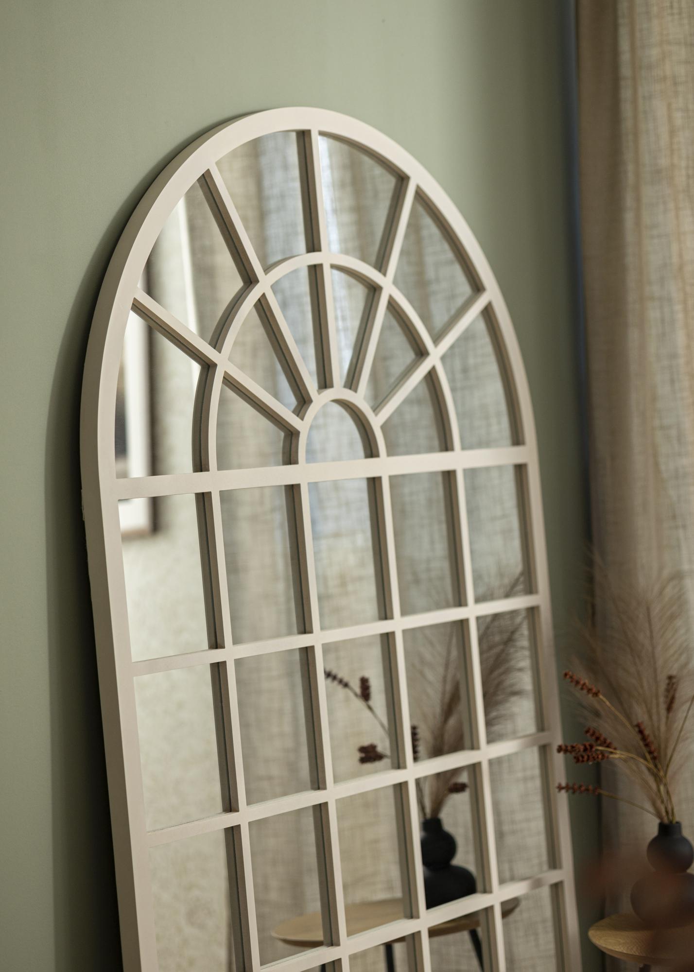 Αυτός ο καθρέφτης έχει ένα ημικυκλικό σχήμα τόξου που δημιουργεί απαλές γραμμές και μια κλασική αίσθηση, που ταιριάζει καλά σε ένα παραδοσιακό ή εμπνευσμένο από vintage στιλ εσωτερικού χώρου. Το μοναδικό του σχήμα τον καθιστά ένα έργο τέχνης από μόνο του και λειτουργεί εξίσου καλά τόσο ως πρακτικό αντικείμενο όσο και ως διακοσμητική πινελιά στο σπίτι σας.