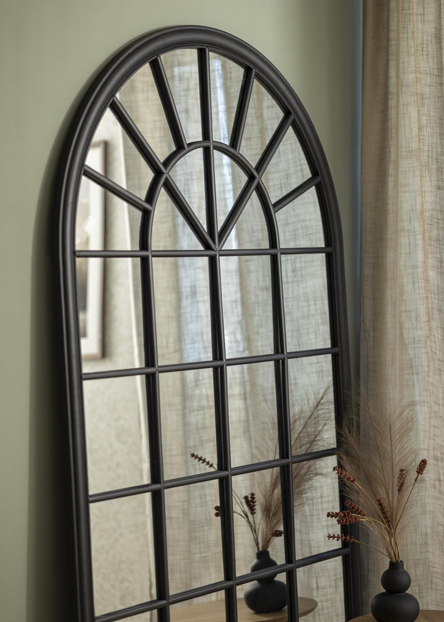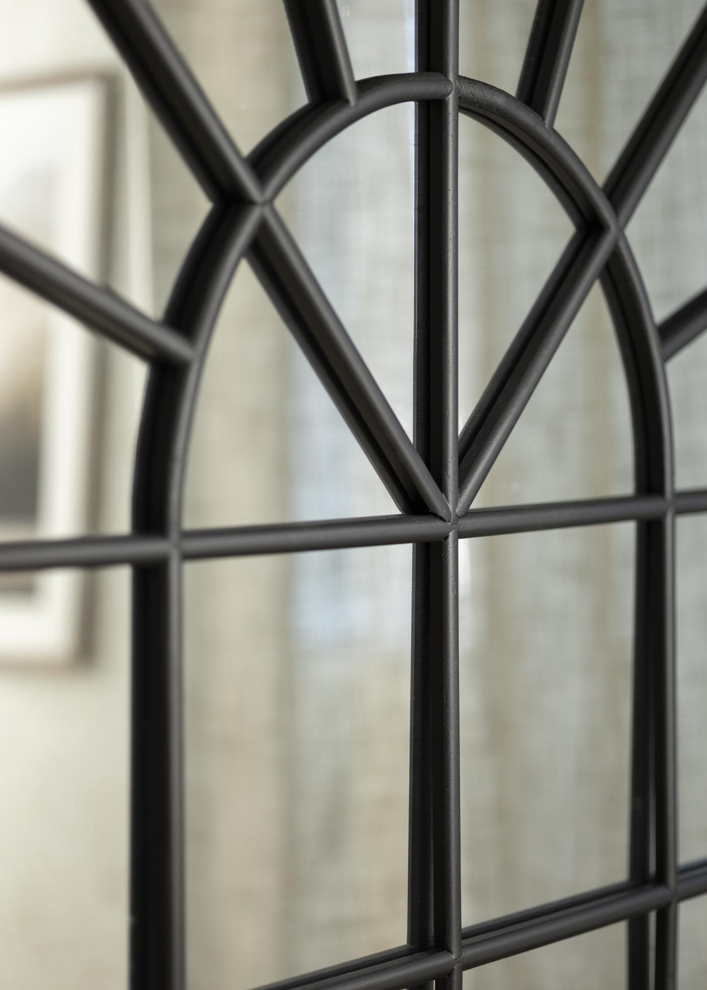 Ανακαλύψτε την επιβλητική παρουσία του μοναδικού μας καθρέφτη, έναν πραγματικό πόλο έλξης για κάθε δωμάτιο. Με τις γενναιόδωρες διαστάσεις του 103x180 cm, αυτός ο καθρέφτης προσφέρει όχι μόνο μια πρακτική λειτουργία αλλά γίνεται και μέρος της διακόσμησής σας. Η εντυπωσιακή ημικυκλική καμπύλη του στην κορυφή συμπληρώνεται από ένα συναρπαστικό πλέγμα που μοιάζει με παράθυρο, το οποίο δίνει στον καθρέφτη μια ξεχωριστή βιομηχανική αισθητική.
