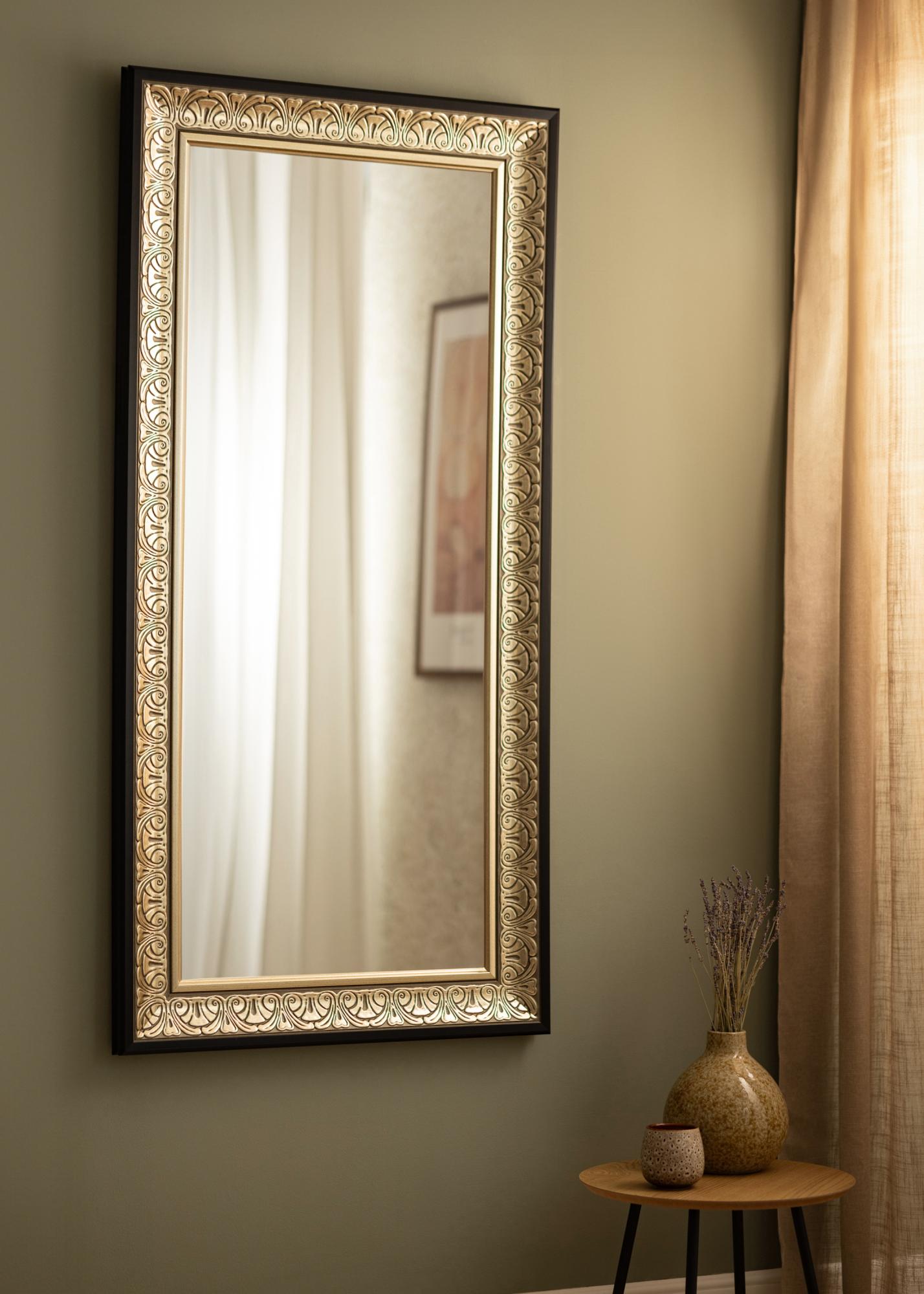 Κομψός ασημί στολισμένος καθρέφτης που ταιριάζει εξίσου καλά σε μια γκαρνταρόμπα, στο χολ ή στο μπάνιο. Η εμφάνιση του πλαισίου γύρω από τον καθρέφτη, με το διαχρονικό μοτίβο, κάνει τον καθρέφτη να ταιριάζει σε όλους τους τύπους διακόσμησης, από ρομαντικά παστέλ θηλυκά υπνοδωμάτια έως πιο κομψά και γενικά μίνιμαλ περιβάλλοντα όπου ο καθρέφτης δημιουργεί μια αντίθεση. Επίσης, ταιριάζει καλά να κρεμαστεί πάνω από μια συρταριέρα ή μπουφέ για να δώσει την αίσθηση περισσότερου χώρου στο δωμάτιο.