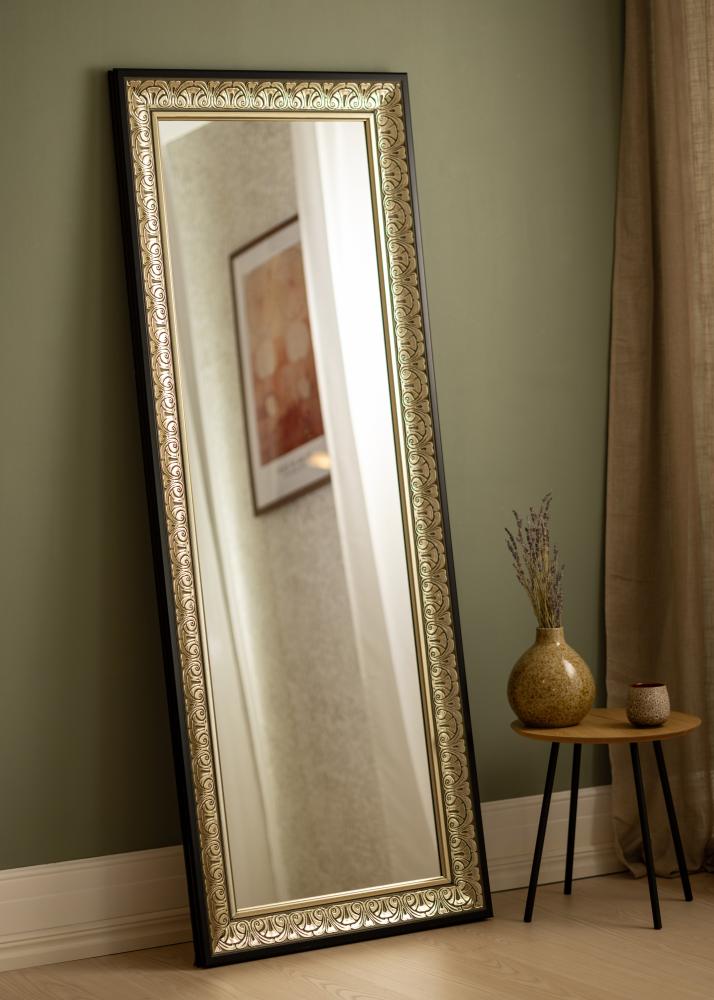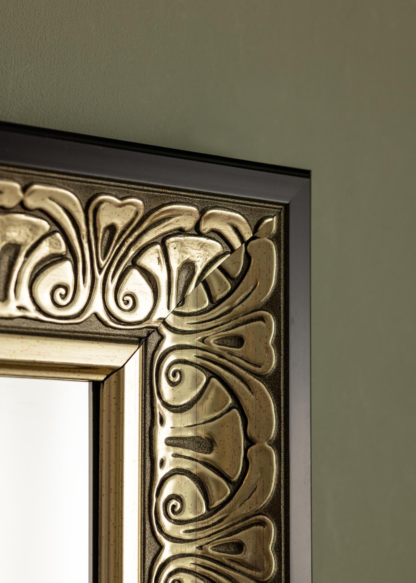 Όμορφος ασημί στολισμένος καθρέφτης που ταιριάζει εξίσου καλά σε μια ντουλάπα walk-in όπως και στο χολ ή στο μπάνιο. Η εμφάνιση της κορνίζας γύρω από τον καθρέφτη, με το διαχρονικό σχέδιο, καθιστά τον καθρέφτη κατάλληλο για όλους τους τύπους στυλ διακόσμησης, από ρομαντικά παστέλ θηλυκά υπνοδωμάτια μέχρι πιο κομψά και γενικά πιο απλοποιημένα περιβάλλοντα όπου ο καθρέφτης δημιουργεί μια αντίθεση. Επίσης, κάνει καλή εντύπωση να κρεμαστεί πάνω από έναν μπουφέ ή μια συρταριέρα για να δώσει αίσθηση περισσότερου χώρου στο δωμάτιο.