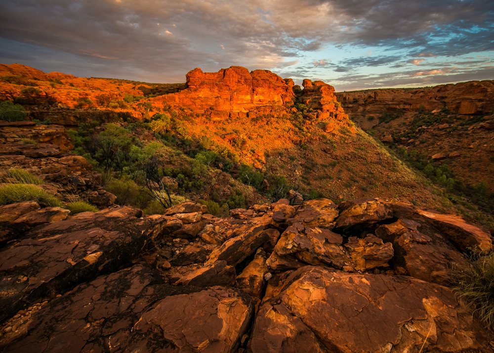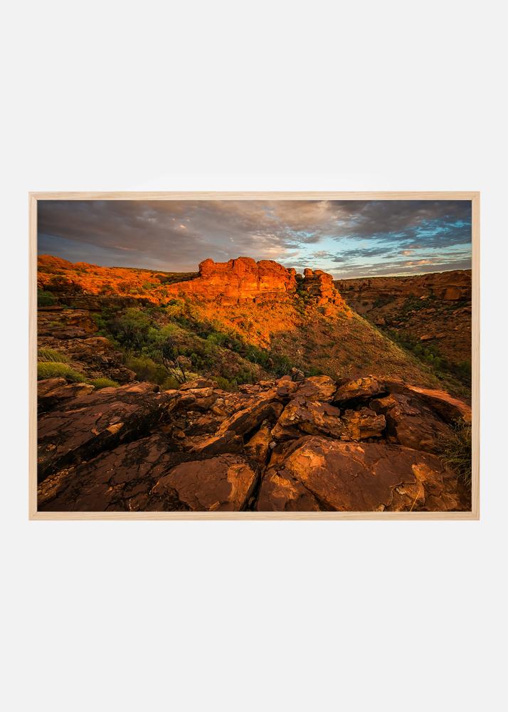 Αφίσα με φωτογραφία από άγονα κόκκινα βουνά στο ηλιοβασίλεμα, κάτι για εκείνους που αγαπούν τις ερήμους και τους σχηματισμούς βράχων για να κρεμάσουν στον τοίχο. Οι θερμοί κόκκινοι τόνοι ενάντια στον παγωμένο μπλε του ουρανού και το βάθος στην εικόνα δημιουργούν ένα ενδιαφέρον μοτίβο. Τοποθετήστε την αφίσα σε ένα όμορφο πλαίσιο φωτογραφιών και βάλτε την σε έναν τοίχο με πίνακες μαζί με άλλα μοτίβα ερήμου.
