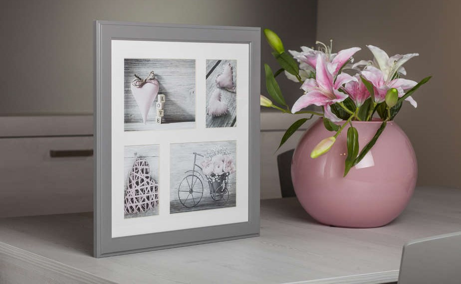 Όταν η ζωή φαίνεται βαρετή και δεν έχεις προγραμματίσει τίποτα διασκεδαστικό, μπορείς πάντα να ταξιδέψεις πίσω στις καλύτερες αναμνήσεις σου κοιτώντας φωτογραφίες. Αυτή η κομψή κολλαζόραμα συγκεντρώνει τέσσερις αγαπημένες φωτογραφίες και τις μετατρέπει σε έναν όμορφο σύνολο. Η φωτογραμμή είναι σε ανοιχτό γκρι και έχει πολυτελείς λεπτομέρειες. Το ανοιχτό γκρι χρώμα συνδυάζεται εξαιρετικά με ασπρόμαυρες ή παστέλ φωτογραφίες.