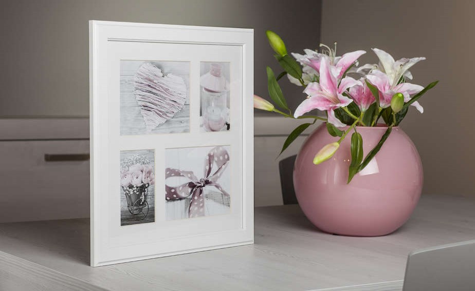 Δεν μπορείτε να αποφασίσετε ποια φωτογραφία είναι η καλύτερη από το πάρτι ή το γάμο, είναι εξίσου καλό να δημιουργήσετε ένα κολλάζ από τις αγαπημένες σας φωτογραφίες. Εδώ έχουμε μια κομψή κορνίζα κολλάζ που συγκεντρώνει τις φωτογραφίες σε μια συμμετρική ολότητα. Η κορνίζα έχει πολυτελείς λεπτομέρειες και είναι ολόλευκη, καθιστώντας εύκολη την αντιστοίχιση. Στο εσωτερικό υπάρχει ένα λευκό passepartout που οργανώνει και προστατεύει.