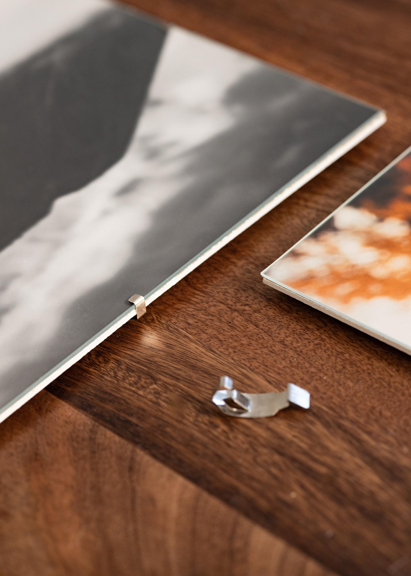 Ένα κλιπ κορνίζα είναι η τέλεια επιλογή όταν επιθυμείτε όλη η εστίαση να πηγαίνει στο θέμα. Με μια κλιπ κορνίζα, αποκτάτε ένα πολύ ζωντανό θέμα που ενσωματώνεται στο περιβάλλον. Χάρη στο αντιθαμβωτικό γυαλί της κορνίζας, αποφεύγετε πολλές από τις ενοχλητικές αντανακλάσεις από τις γύρω πηγές φωτός που είναι συνήθως κοινές. Ωστόσο, το μειονέκτημα αυτού του τύπου αντιθαμβωτικού γυαλιού είναι ότι τα χρώματα γίνονται κάπως πιο ματ από ότι με το συνηθισμένο γυαλί.