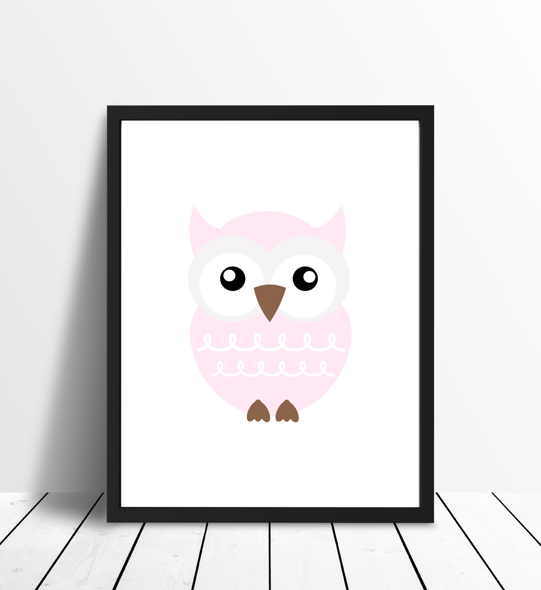 Γλυκιά αφίσα με το νούμερο ένα πουλί της μόδας, τη κουκουβάγια. Η εικονογράφηση μιας στυλιζαρισμένης ροζ κουκουβάγιας σε λευκό φόντο έχει γίνει ένα σύγχρονο κλασικό. Το μοτίβο ταιριάζει εξίσου καλά στο καθιστικό όπως και στο παιδικό δωμάτιο και φαίνεται εξαιρετικό με μια διακόσμηση που αναδεικνύει το χρώμα στον πίνακα. Συνδυάστε με άλλα πουλιά ή ζώα για μια άγρια αίσθηση.