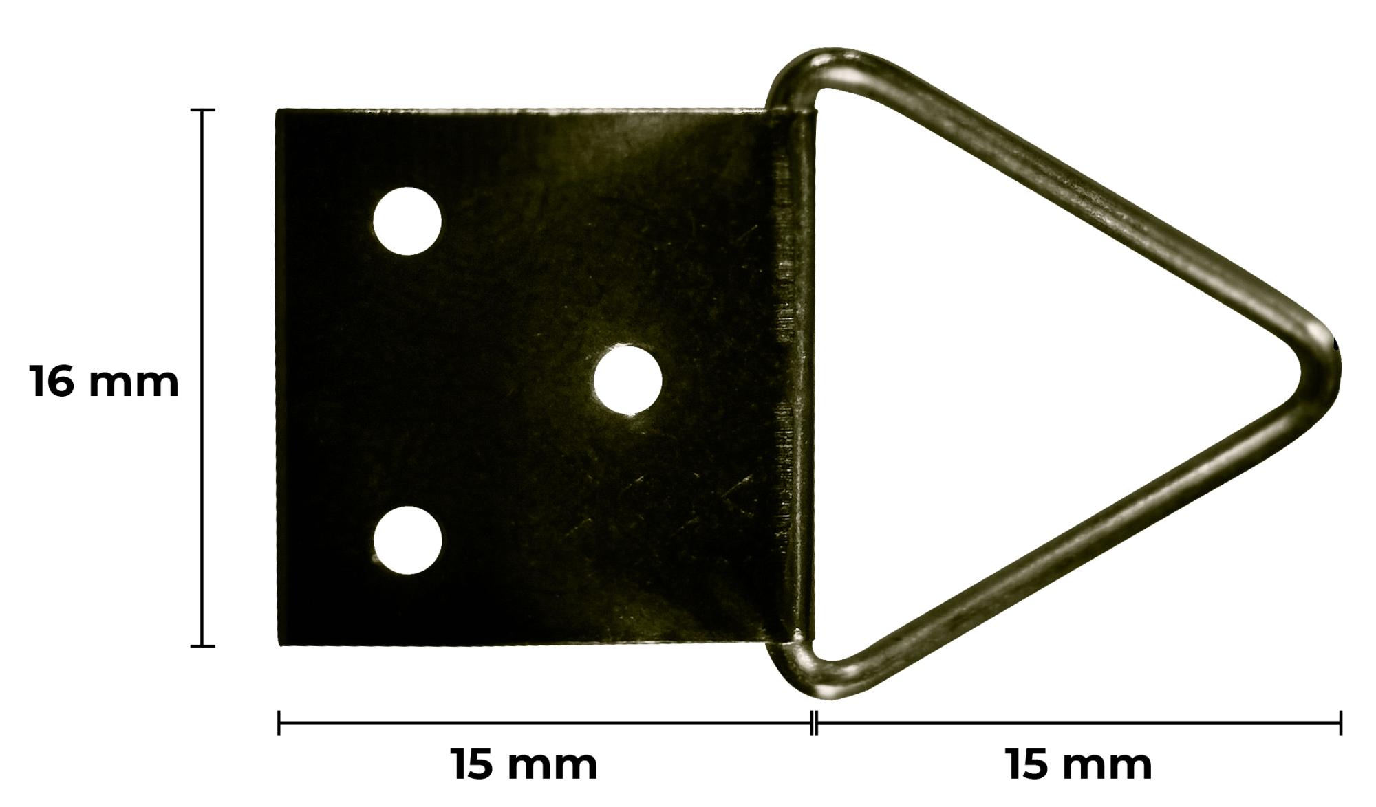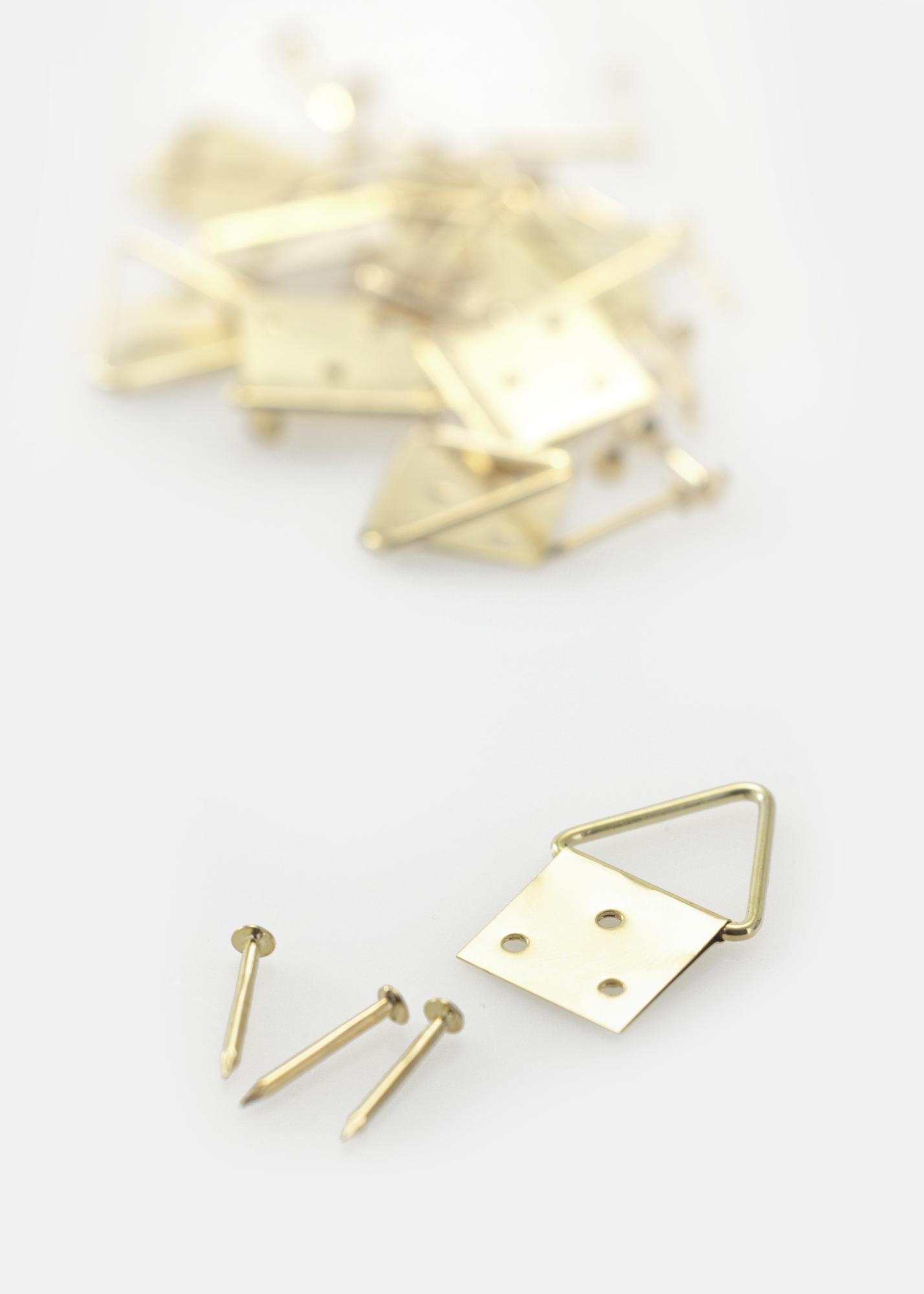 Τριγωνικός κρεμαστής από ορείχαλκο. Καρφώνεται στην πίσω πλευρά της κορνίζας. Μπορεί να χρησιμοποιηθεί ως ένα κρεμαστάρι ή δύο κρεμαστάρια αν θέλετε να χρησιμοποιήσετε σύρμα για κορνίζες. Αυτός ο κρεμαστής είναι ιδανικός για λίγο μεγαλύτερους πίνακες (μέγιστο μέγεθος: 60x90 cm)