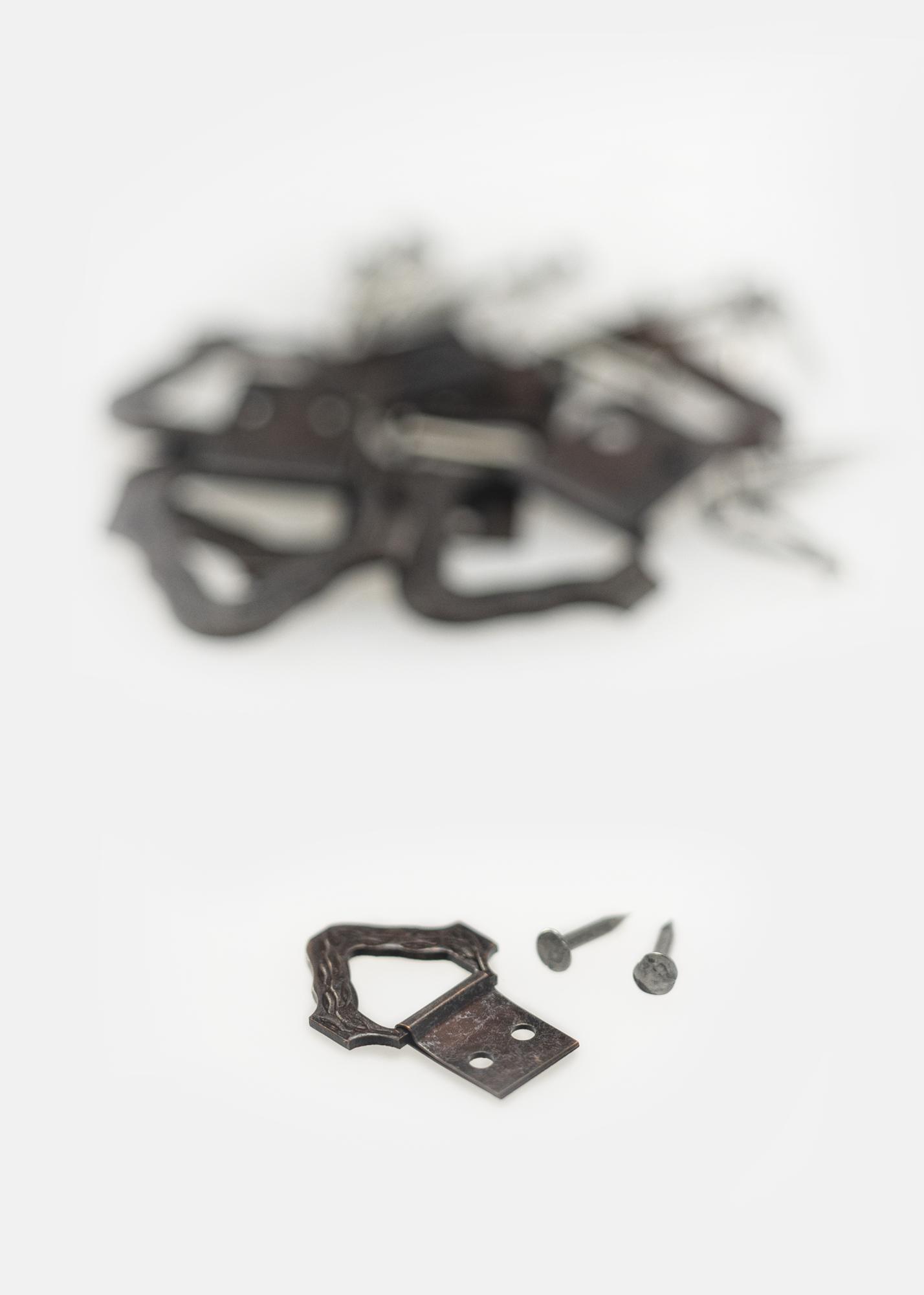 Λίγο πιο αποκλειστικό τρίγωνο κρέμασμα που καρφώνεται στο πίσω μέρος του πλαισίου. Ιδανικό για παλαιότερα και λίγο πιο φινετσάτα πλαίσια. Το κρέμασμα είναι σχεδιασμένο να φαίνεται πάνω από το πλαίσιο όταν το κρεμάτε. Επιλέγετε εσείς αν θα χρησιμοποιήσετε ένα ή δύο κρεμάσματα. Αυτό είναι σχεδιασμένο για ελαφρύτερα πλαίσια (μέγιστες διαστάσεις πλαισίου: 24x30 εκ.)
