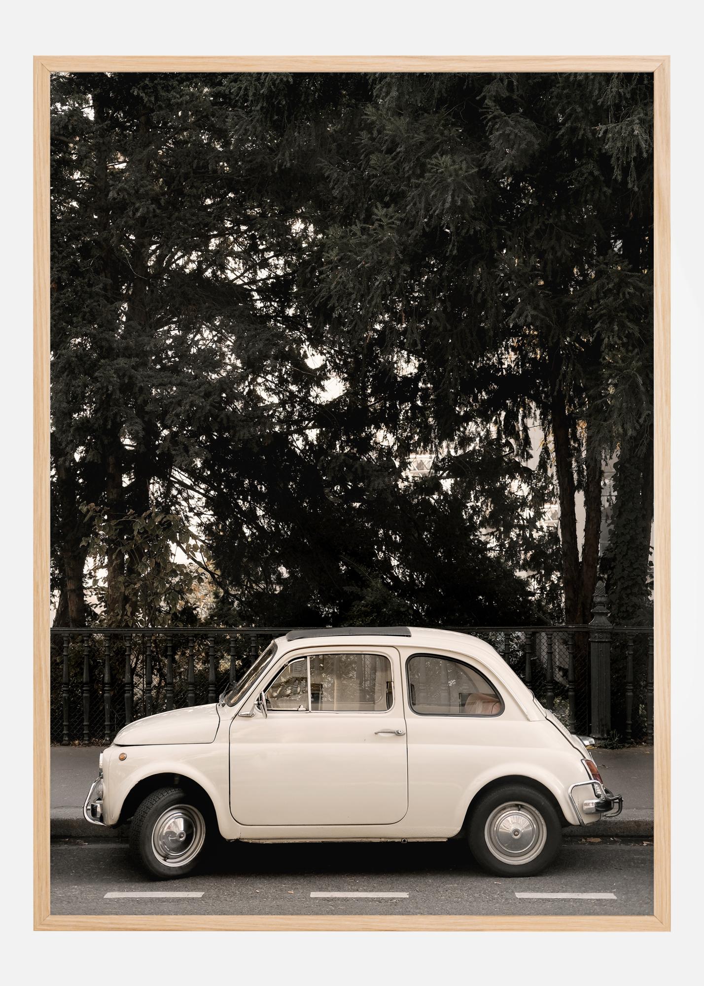 Σε αυτήν την αφίσα αντανακλάται μια τέλεια ισορροπία μεταξύ της καθαρής λευκής επιφάνειας του οχήματος και των σκοτεινότερων πράσινων τόνων από τα δέντρα στο φόντο, που μαζί δημιουργούν μια ήρεμη και αρμονική εικόνα. Ο ουρανός σε απόχρωση σέπια και το υποβόσκον αστικό περιβάλλον προσθέτουν μια επιπλέον διάσταση ζεστασιάς και βάθους. Αυτή η αφίσα θα προσδώσει μια πινελιά κομψότητας σε οποιοδήποτε δωμάτιο και είναι το ιδανικό δώρο για λάτρεις του αυτοκινήτου ή για εκείνους που εκτιμούν την κλασική αισθητική στη διακόσμηση των εσωτερικών τους χώρων.