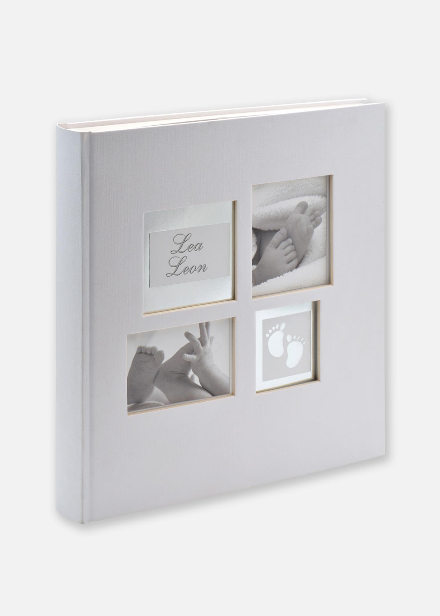 Κομψό άλμπουμ μωρού σε λευκό με ανοιχτή γκρι απόχρωση με χώρο για συνολικά 4 εικόνες στο μπροστινό μέρος του άλμπουμ. Τέλειο όταν θέλετε να δημιουργήσετε το δικό σας προσωπικό άλμπουμ μωρού για τις αγαπημένες σας φωτογραφίες.