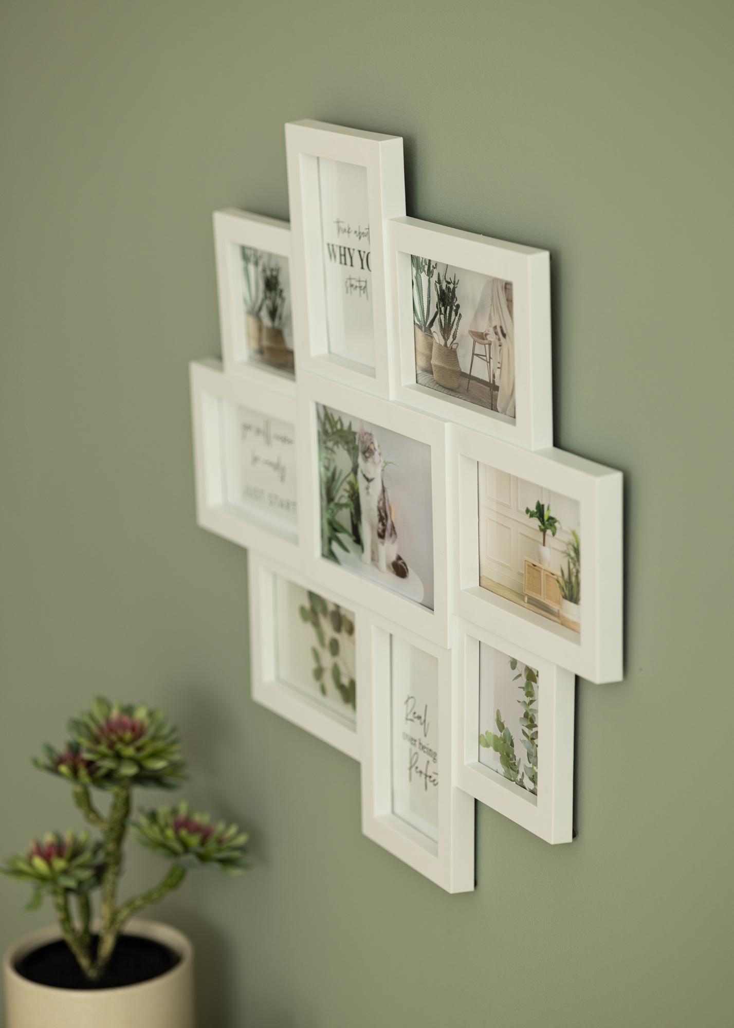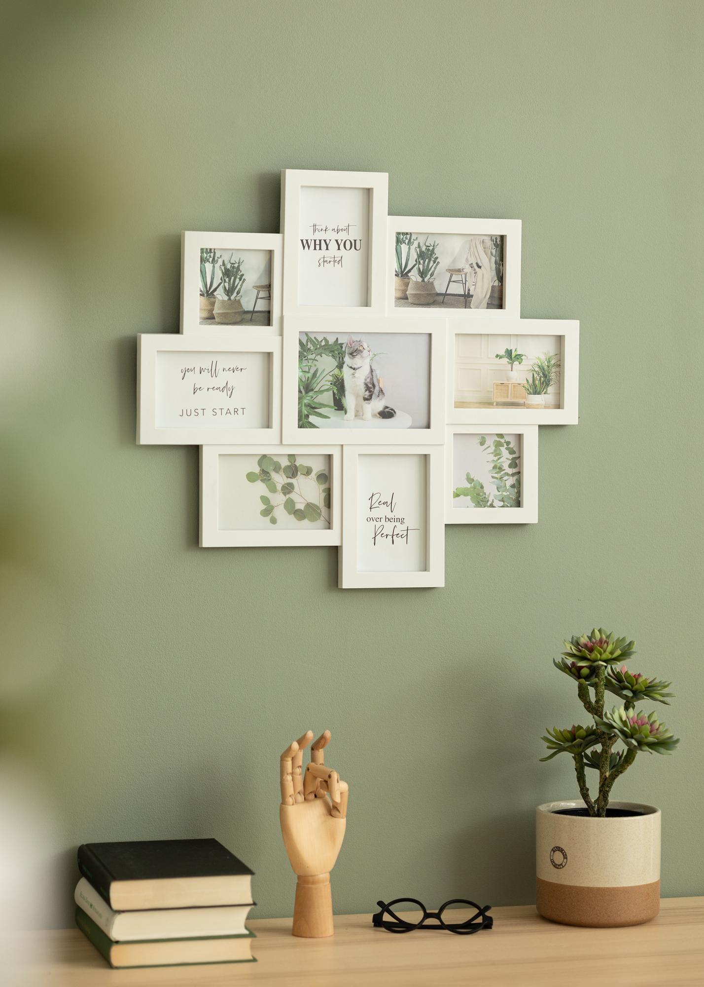 Με αυτή τη στυλάτη κορνίζα κολάζ, μπορείτε να συγκεντρώσετε όλες τις αγαπημένες σας φωτογραφίες σε μία και μόνο κορνίζα! Η κορνίζα φωτογραφιών χωρά συνολικά 9 φωτογραφίες: 2 φωτογραφίες σε μέγεθος 10x10 εκ., 6 φωτογραφίες σε 10x15 εκ. και 1 φωτογραφία σε 13x18 εκ. Μπορείτε επίσης να τοποθετήσετε φωτογραφίες τόσο σε κατακόρυφο όσο και σε οριζόντιο προσανατολισμό, επιτρέποντας μεγαλύτερη ευελιξία στην επιλογή φωτογραφιών. Η κορνίζα έχει ένα ασύμμετρο σχήμα που προσδίδει μια μοντέρνα και κομψή αίσθηση.