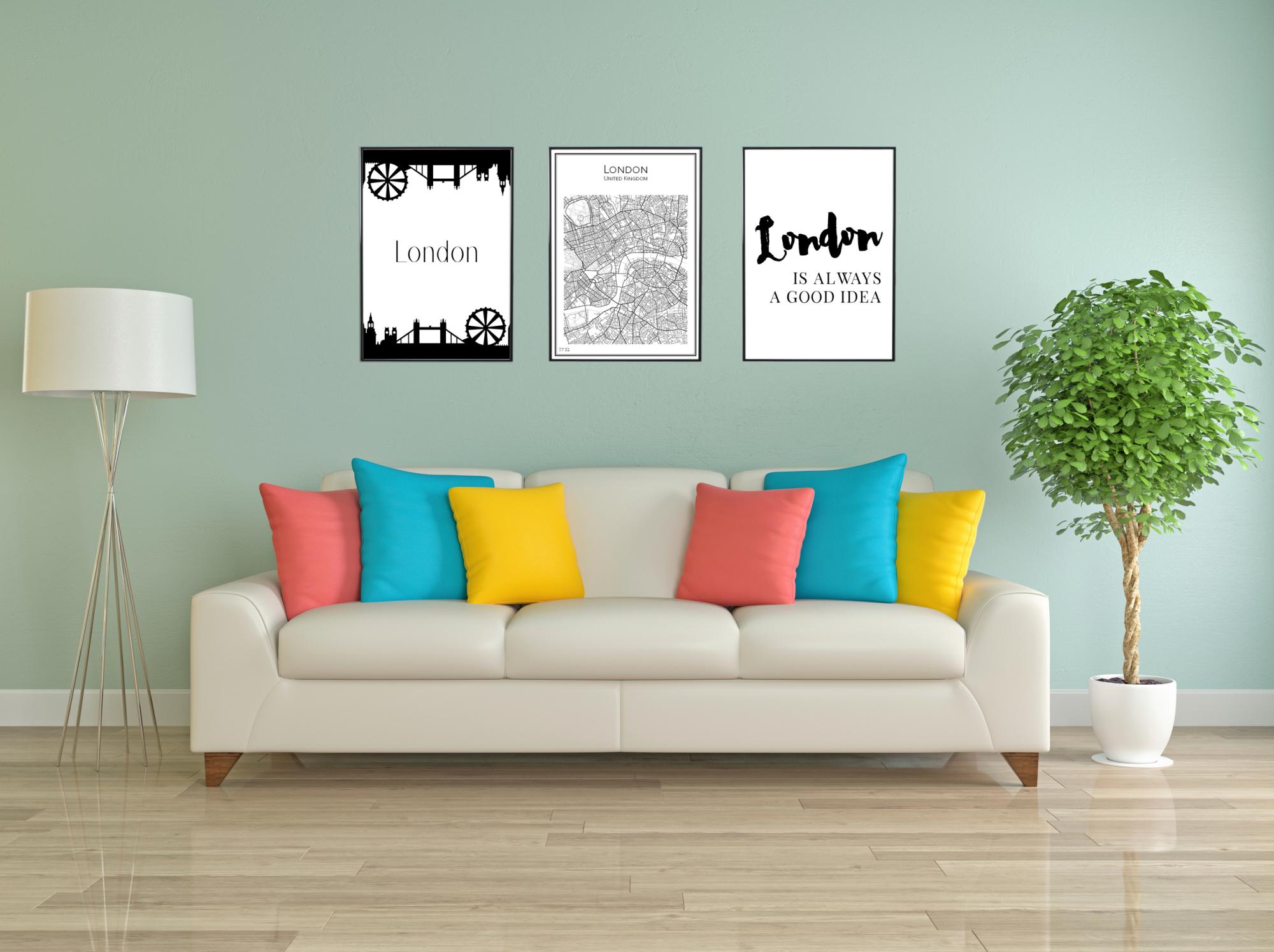 Η αφίσα για εκείνον που είναι παθιασμένος με το Λονδίνο και απολαμβάνει να ξεφεύγει για ένα σαββατοκύριακο μόλις δοθεί η ευκαιρία. Το γραφικό σχέδιο είναι όμορφο να κρέμεται μαζί με άλλα μοτίβα του Λονδίνου, όπως χάρτες και φωτογραφίες, σε έναν τοίχο με θέμα που γίνεται πόλος έλξης στο δωμάτιο. Η αφίσα ταιριάζει καλά σε μια μαύρη ή λευκή λεπτή κορνίζα που επιτρέπει στο μοτίβο να μιλήσει και ο κομψός πίνακας εντάσσεται ωραία σε όλα τα είδη διακόσμησης και περιβάλλοντα.