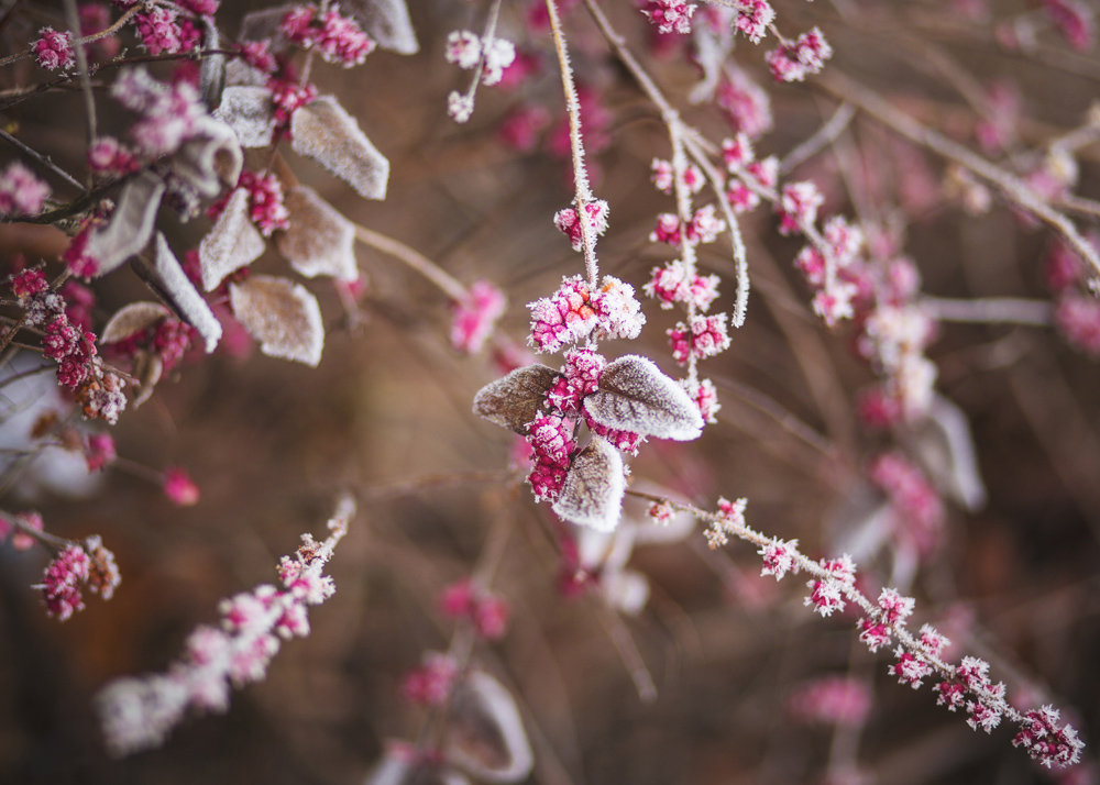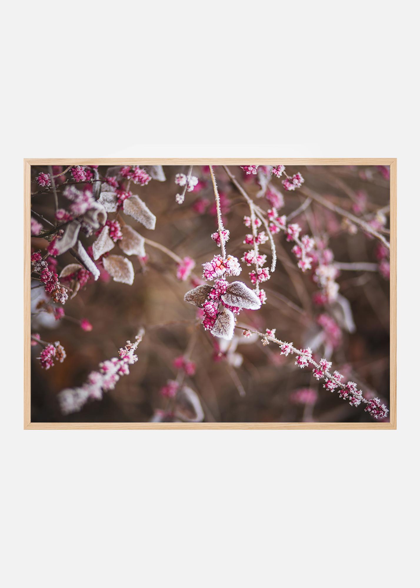 Φωτογραφική τέχνη με κοντινό πλάνο παγωμένων ροζ μούρων με μικρό βάθος πεδίου. Το εκτύπωμα με τα μούρα σε ροζ και το φόντο σε τόνους σοκολάτας δίνει μια ζεστή και άνετη αίσθηση. Σε μεγαλύτερο μέγεθος με ένα κομψό πλαίσιο, ο πίνακας γίνεται το επίκεντρο στο σαλόνι ή τοποθετήστε μια μικρότερη εκδοχή στην καλλιτεχνική σύνθεση με άλλες αφίσες στις ίδιες αποχρώσεις.