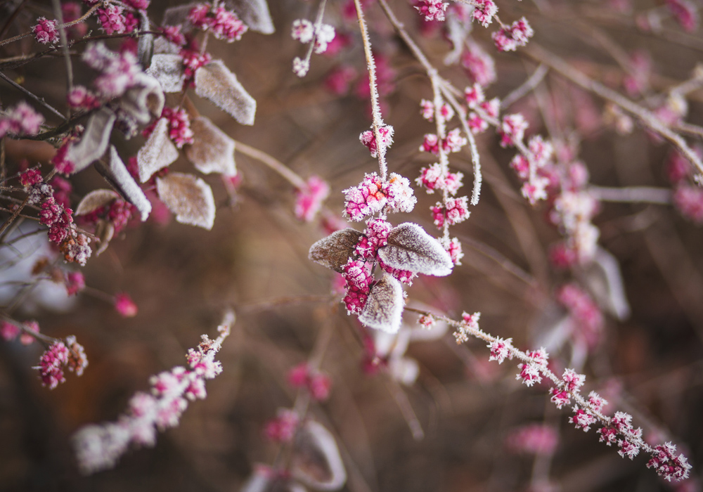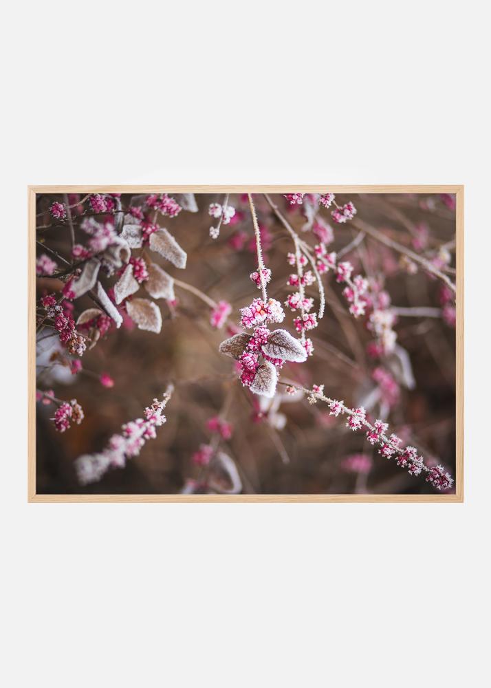 Φωτογραφία τέχνης με κοντινό πλάνο σε ροζιασμένα μούρα με ψύχος και μικρό βάθος πεδίου. Το εκτύπωμα με τα μούρα σε ροζ και το φόντο σε τόνους σοκολάτας δίνει μια ζεστή και άνετη αίσθηση. Σε μεγαλύτερο μέγεθος με μια όμορφη κορνίζα γίνεται ένα σημείο εστίασης στο σαλόνι ή βάλτε μια μικρότερη εκδοχή στο κολλάζ κορνιζών μαζί με άλλες αφίσες στις ίδιες αποχρώσεις.