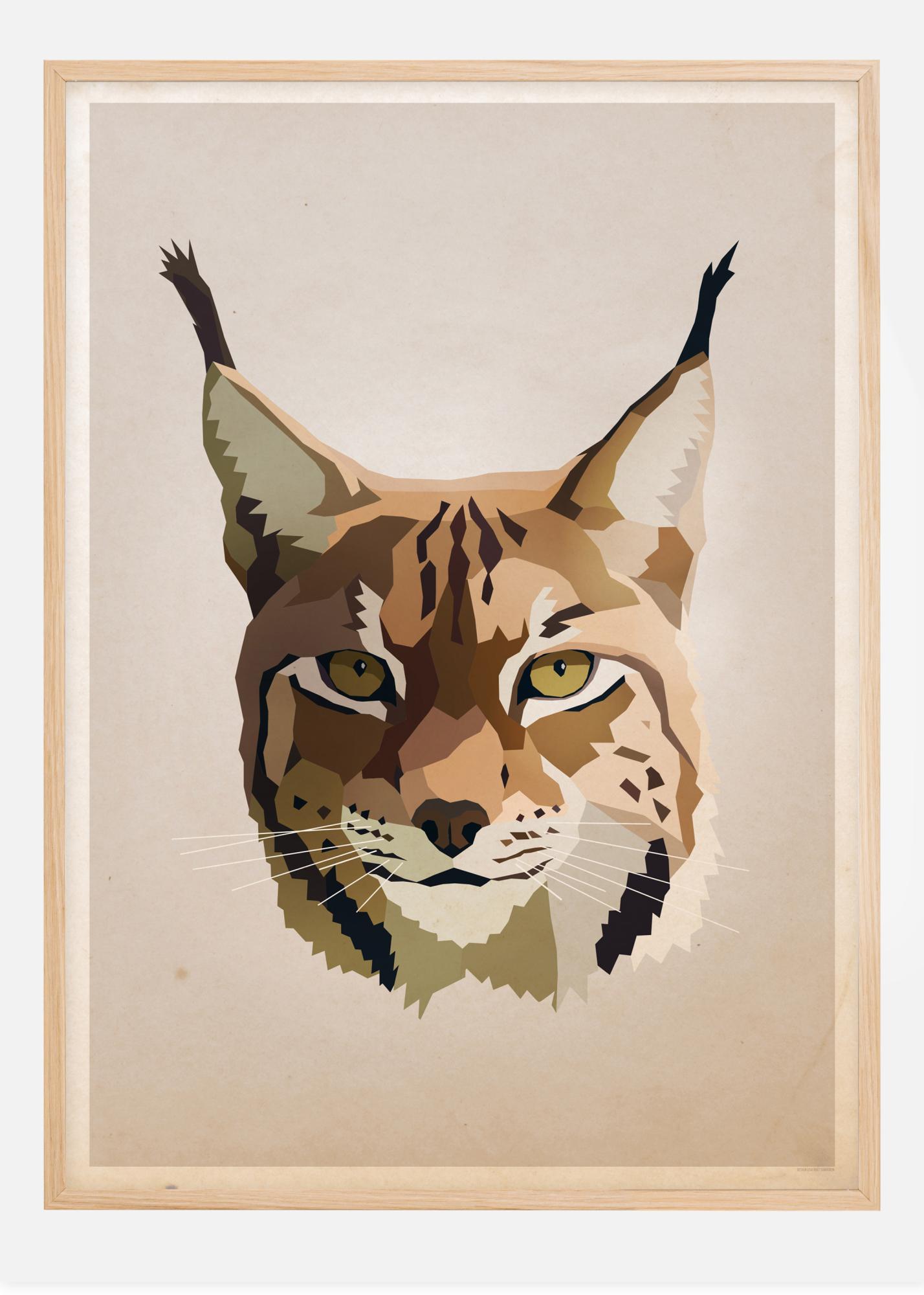 Μια έντονη αφίσα σε παστέλ αποχρώσεις με ένα όμορφο λύγκα. Σε ένα ανοιχτό ροζ φόντο, τα μάτια του ζώου αντιπροσωπεύουν ένα προσεκτικό αλλά και κυρίαρχο βλέμμα. Οι διάφορες καφέ και πράσινες παστέλ αποχρώσεις ενσωματώνονται όμορφα στα μάτια του λύγκα.