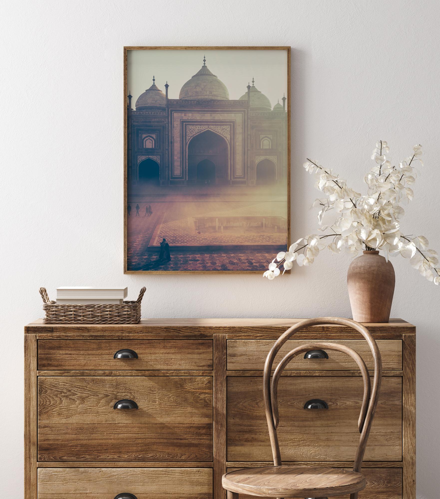Το πνευματικό κέντρο του μουσουλμανικού κόσμου στέκεται με αυτοπεποίθηση στην πλατεία στο προσκήνιο. Μια μικρή ομάδα ανθρώπων περιφέρεται στην πλατεία μέσα από μια έντονα φωτισμένη παραμένουσα ομίχλη. Η μεγαλύτερη από τις εισόδους του τζαμιού περιβάλλεται από μικρότερες εισόδους τόσο αριστερά όσο και δεξιά. Μια ειρηνική αφίσα για να δημιουργήσει μια χαλαρωτική ατμόσφαιρα.