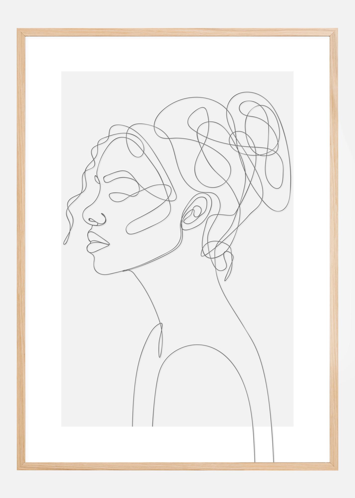 Αυτή είναι μια εντυπωσιακή αφίσα με ένα σκίτσο γυναικείας προτομής που κοιτάζει προς τα αριστερά στον καμβά. Τα σγουρά μαλλιά της είναι δεμένα με έναν κόμπο στην κορυφή του κεφαλιού. Κάθε γραμμή ρέει επιδέξια στην επόμενη χωρίς ποτέ να αφήνει το αποτύπωμα ως σύμβολο της ζωής του μοντέλου. Μια αρχή, ένα τέλος. Ένα όμορφο αλλά μυστηριώδες τύπωμα για όλα τα περιβάλλοντα.