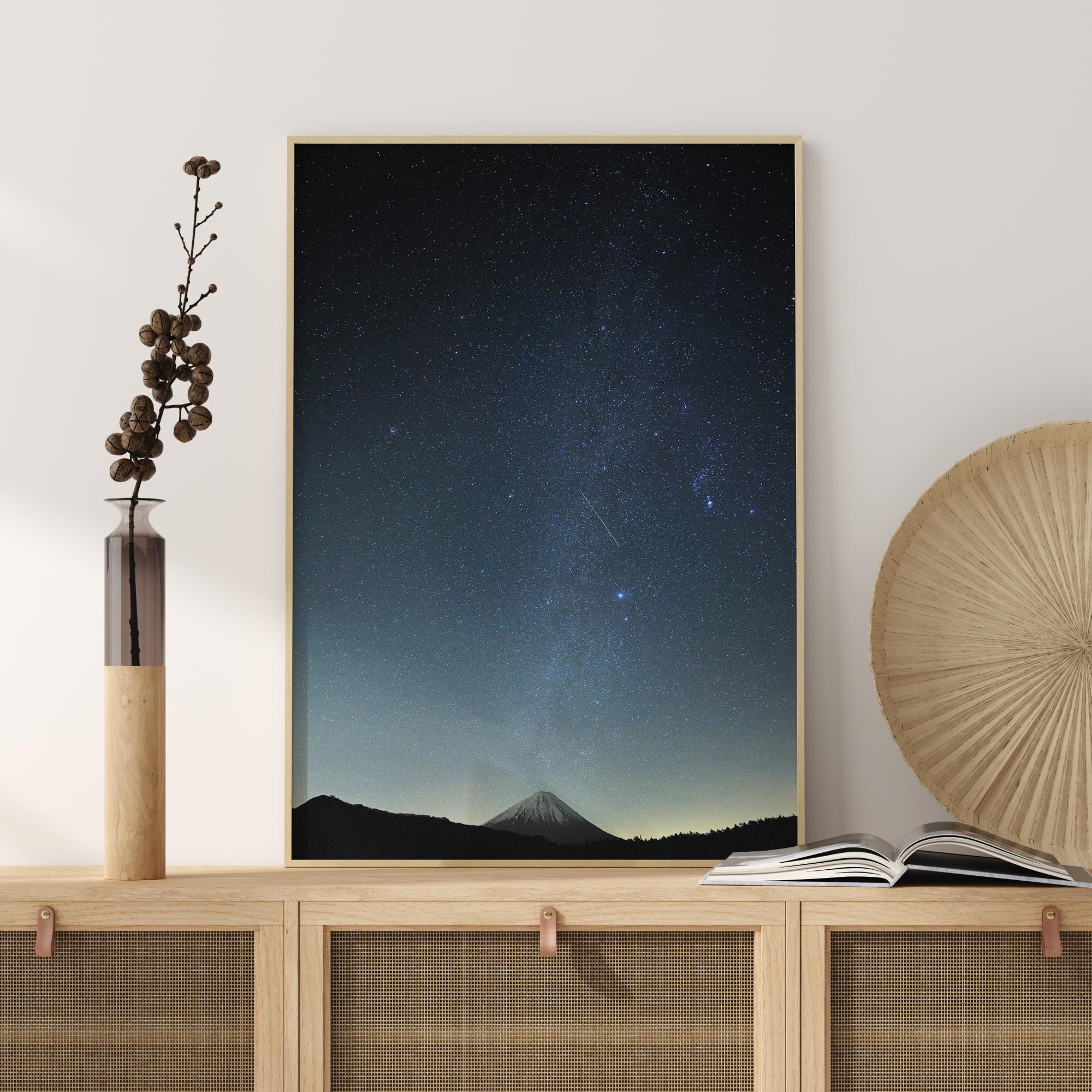 Μια όμορφη αφίσα με έναν νυχτερινό ουρανό και ένα μετέωρο. Με ένα χιονισμένο βουνό που φαίνεται από μακριά, υπάρχει μια μυστηριώδης αίσθηση πάνω από τα μαγικά λευκά αστέρια. Μια ακτίνα φυσικού φωτός λάμπει πίσω από το βουνό και δημιουργεί την μαγική και μυστηριώδη αίσθηση. Τέλεια για ένα παιδικό δωμάτιο.