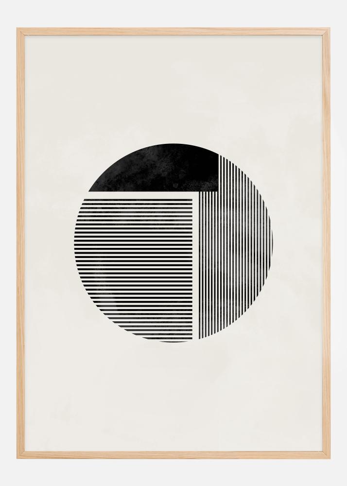 Αυτή η κομψή και μινιμαλιστική αφίσα είναι μια μελέτη αντίθεσης και απλότητας, παρουσιάζοντας ένα ημικύκλιο χωρισμένο σε μαύρο και άσπρο με ριγέ μοτίβα. Το αφηρημένο μοτίβο είναι μια προσεκτικά ισορροπημένη σύνθεση γεωμετρικών μορφών και γραμμών, δημιουργώντας άμεση οπτική επίδραση. Αυτό το έργο τέχνης είναι ένας φόρος τιμής στο διακριτικό και εκλεπτυσμένο, προσφέροντας αισθητική διαχρονικότητας που ταιριάζει σε κάθε σύγχρονο σπίτι ή γραφείο.