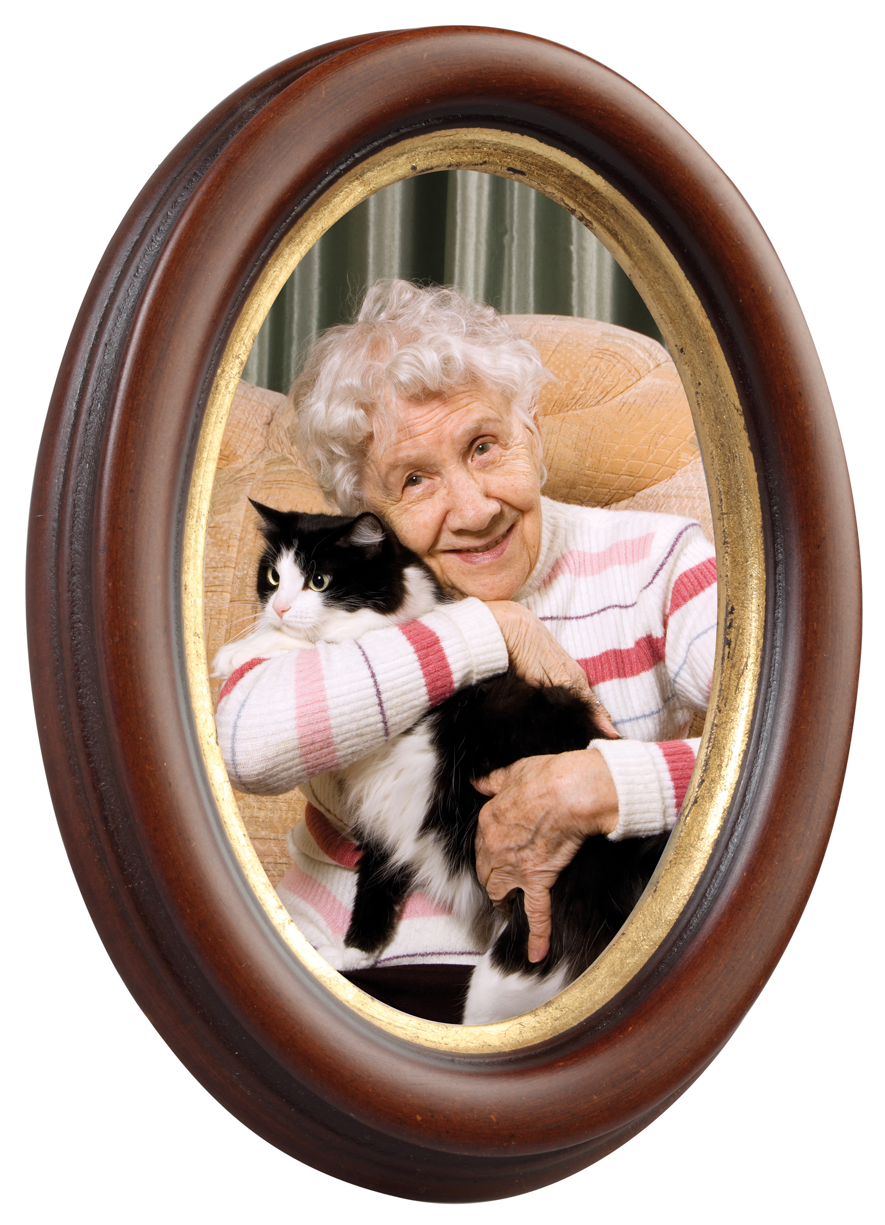 Κλασική οβάλ κορνίζα από ξύλο με ένα κομψό καφέ προφίλ και μια κομψή χρυσή άκρη κοντά στο μοτίβο. Ιδανική όταν αναζητάτε μια πορτραίτου κορνίζα υψηλής ποιότητας που παράγεται επίσης στην Ιταλία.