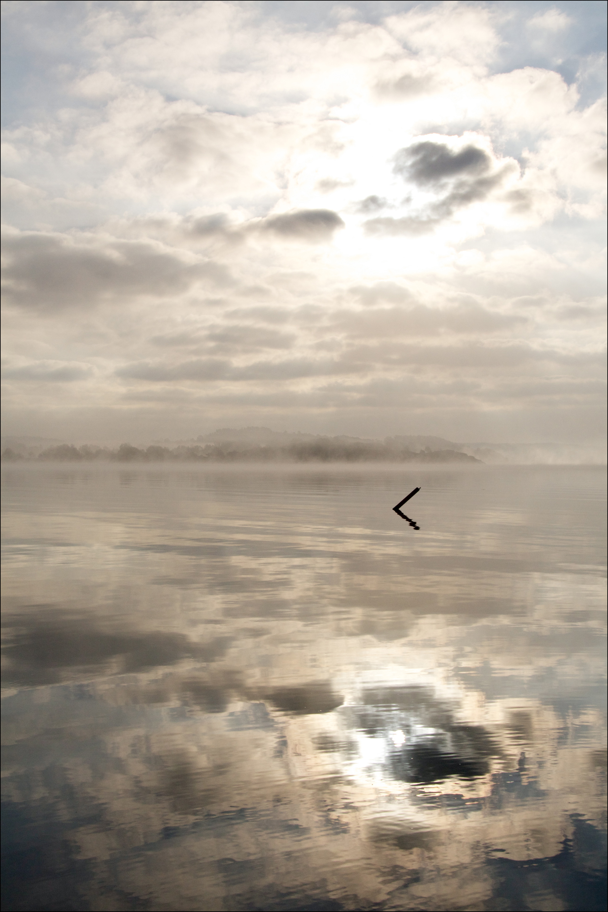 Μια ήρεμη φωτογραφία φύσης που παρουσιάζει νεράιδες που χορεύουν και έναν ουρανό καλυμμένο με σύννεφα που αντανακλάται σε μια ελαφρώς κυματισμένη επιφάνεια νερού. Μια ήρεμη και αρμονική αφίσα που ταιριάζει εξαιρετικά οπουδήποτε επιθυμείτε ένα στοιχείο ηρεμίας.
