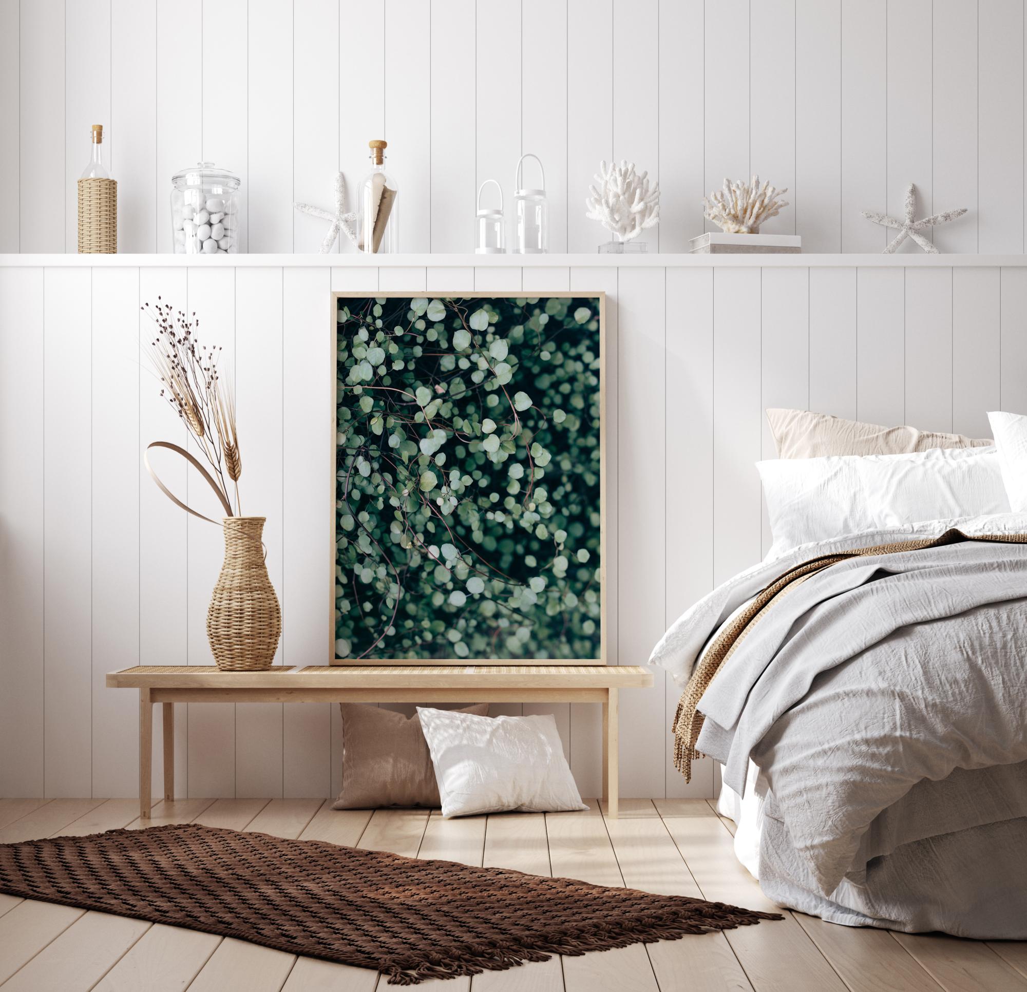 Μια όμορφη πράσινη αφίσα κοντινού πλάνου με μια γλίστρα με τα πολλά της φύλλα και κλαδιά. Μικρά, στρογγυλά φύλλα λαμπυρίζουν χαρούμενα στο ηλιακό φως. Το μαύρο φόντο κάνει τα φύλλα να ξεχωρίζουν ακόμα περισσότερο. Κρεμάστε αυτήν την εκτύπωση σε έναν ανοιχτό πράσινο τοίχο για να προσθέσετε μια ηρεμιστική πινελιά σε ένα δωμάτιο.