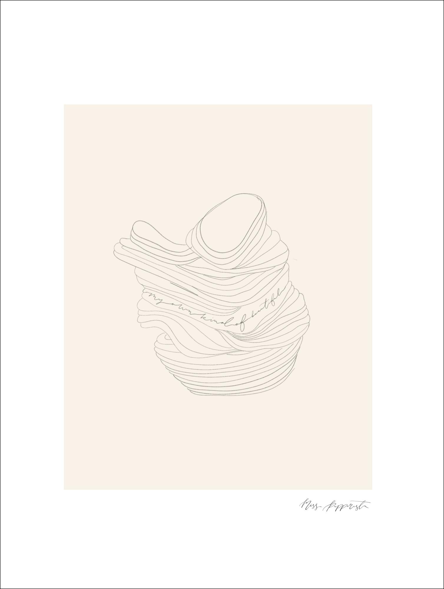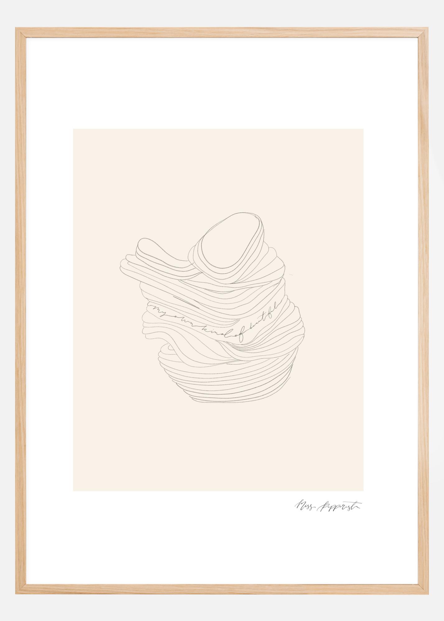 Μια ενδιαφέρουσα ζωγραφιά από στοιβαγμένα αντικείμενα. Ένα υπόλευκο φόντο κατευθύνει το βλέμμα στο ραβδωτό μπολ της εικόνας. Ένα τέλειο αντίτυπο για να ξεκινήσει μια συζήτηση. Κρεμάστε αυτή την αφίσα στο σαλόνι σας και προσπαθήστε να καταλάβετε τι είναι τα στοιβαγμένα αντικείμενα.