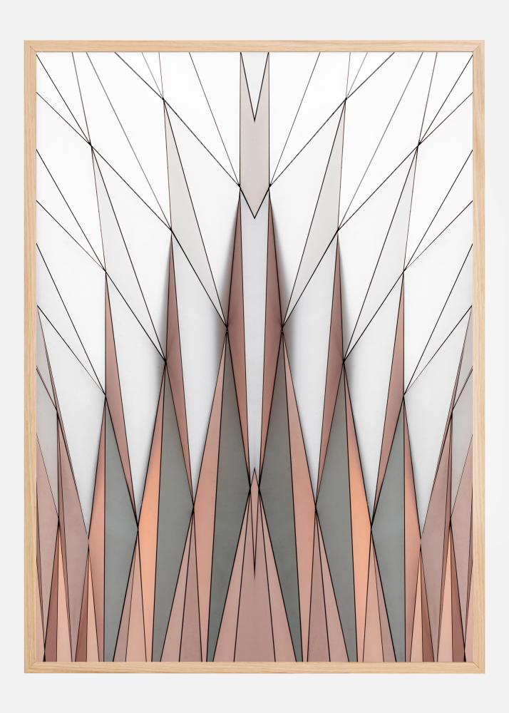 Ένα όμορφο σχέδιο με τρίγωνα. Τα πορτοκαλί και γκρι τρίγωνα είναι τοποθετημένα στο κάτω μέρος του σχεδίου και δείχνουν προς τα πάνω. Τα υπόλοιπα τριγωνικά σε σχήμα διαμαντιού καλύπτουν όμως το άνω μισό του σχεδίου. Μια καταπληκτική αφίσα όταν θέλετε να αποκτήσετε μια αίσθηση του χώρου. Ιδανικό για έναν τοίχο σαλονιού.