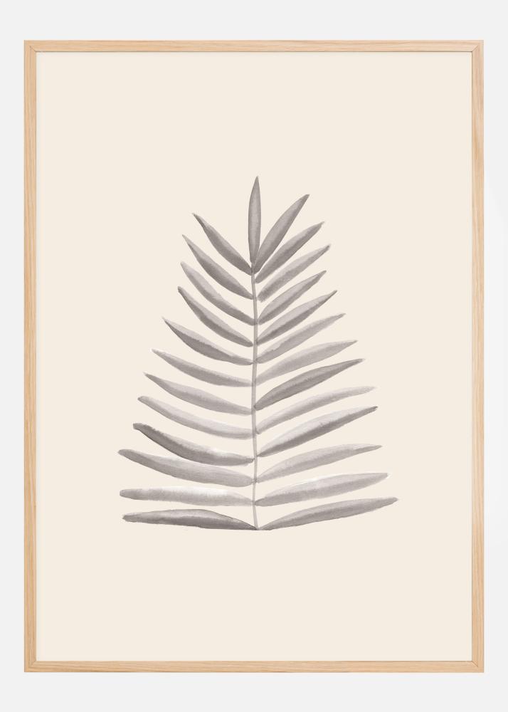 Μια απλή, αλλά σαφής αφίσα με ένα φύλλο φοίνικα. Σχεδιασμένο σε κρεμ φόντο, το φύλλο στέκεται όρθιο στο μίσχο του. Το κρεμ φόντο αναδεικνύει το μικρό καφέ φύλλο φοίνικα. Προσθέστε αυτή την πινελιά κλάσης σε έναν χρωματιστό τοίχο.