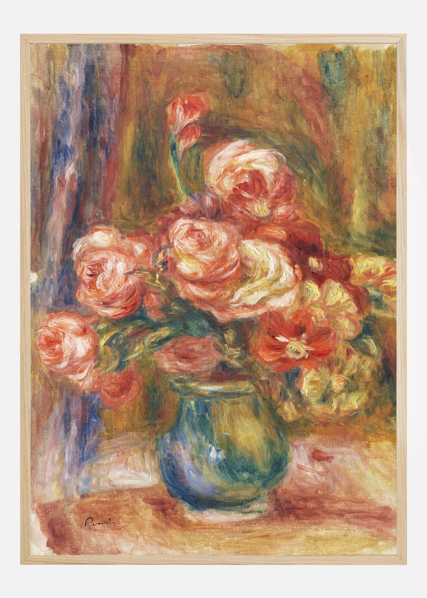 Ένα όμορφο χειροποίητο μπουκέτο με τριαντάφυλλα. Αυτή η φανταστική εκτύπωση με πορτοκαλί και κόκκινα τριαντάφυλλα σε ένα πράσινο και χρωματιστό βάζο δημιουργεί μια ζεστή και χαλαρωτική αίσθηση. Ο συνδυασμός των χρωμάτων σε ένα πολύχρωμο φόντο λιώνει όλα τέλεια μεταξύ τους. Κάντε το σπίτι σας να λάμπει με τη βοήθεια αυτής της υπέροχης αφίσας.