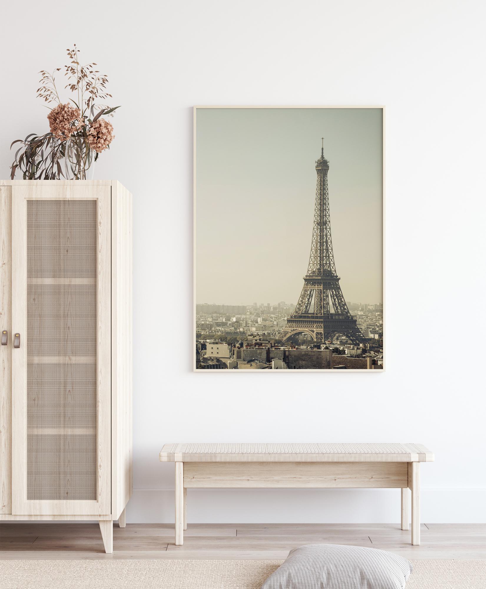 Μια εντυπωσιακή αφίσα με τον Πύργο του Άιφελ. Ο συννεφιασμένος ουρανός ενισχύει την ομορφιά αυτής της εντυπωσιακής αρχιτεκτονικής δομής. Τα γύρω κτίρια εναρμονίζονται τέλεια με τον ασπρόμαυρο σχεδιασμό αυτής της εκτύπωσης. Φανταστείτε τη θέα από την κορυφή αυτού του κτιρίου όταν κρεμάτε αυτήν την εκτύπωση στο σπίτι σας.