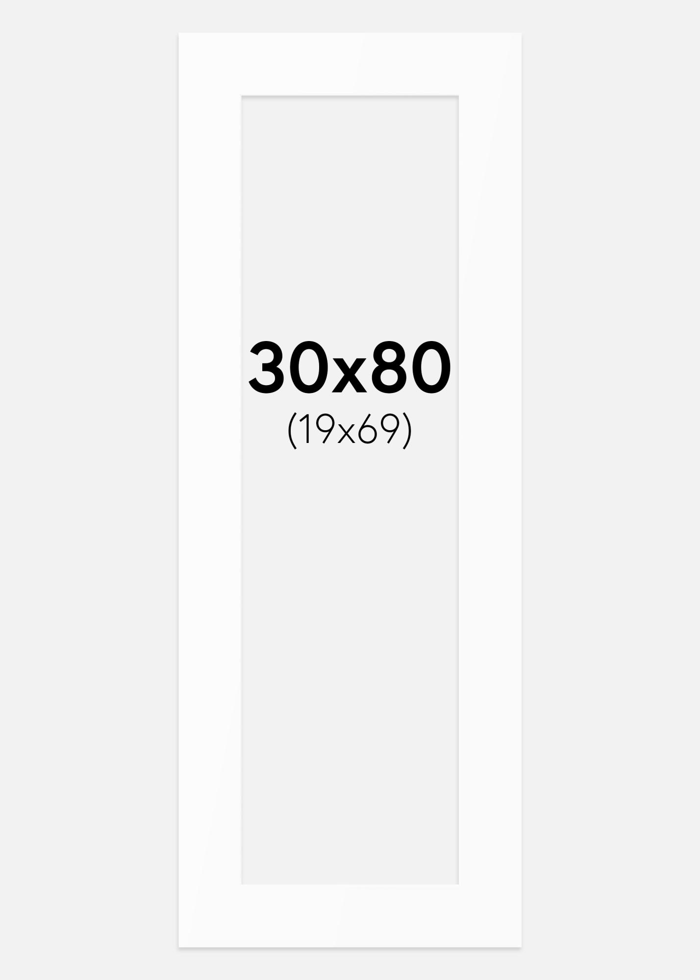 Αυτό το κομψό πασπαρτού σε απόχρωση λευκού είναι η τέλεια επιλογή για να δώσετε στις εικόνες και τα έργα τέχνης σας μια στυλάτη κορνίζα. Με μια πλάγια κομμένη εσωτερική άκρη στην ίδια λευκή απόχρωση, δημιουργείται ένα βάθος που αναδεικνύει το θέμα με έναν εκλεπτυσμένο τρόπο. Το πασπαρτού είναι σχεδιασμένο για να ταιριάζει σε εικόνες διαστάσεων 20x70 cm, ενώ οι εξωτερικές διαστάσεις είναι 30x80 cm, παρέχοντας μια όμορφη και ισορροπημένη παρουσίαση.