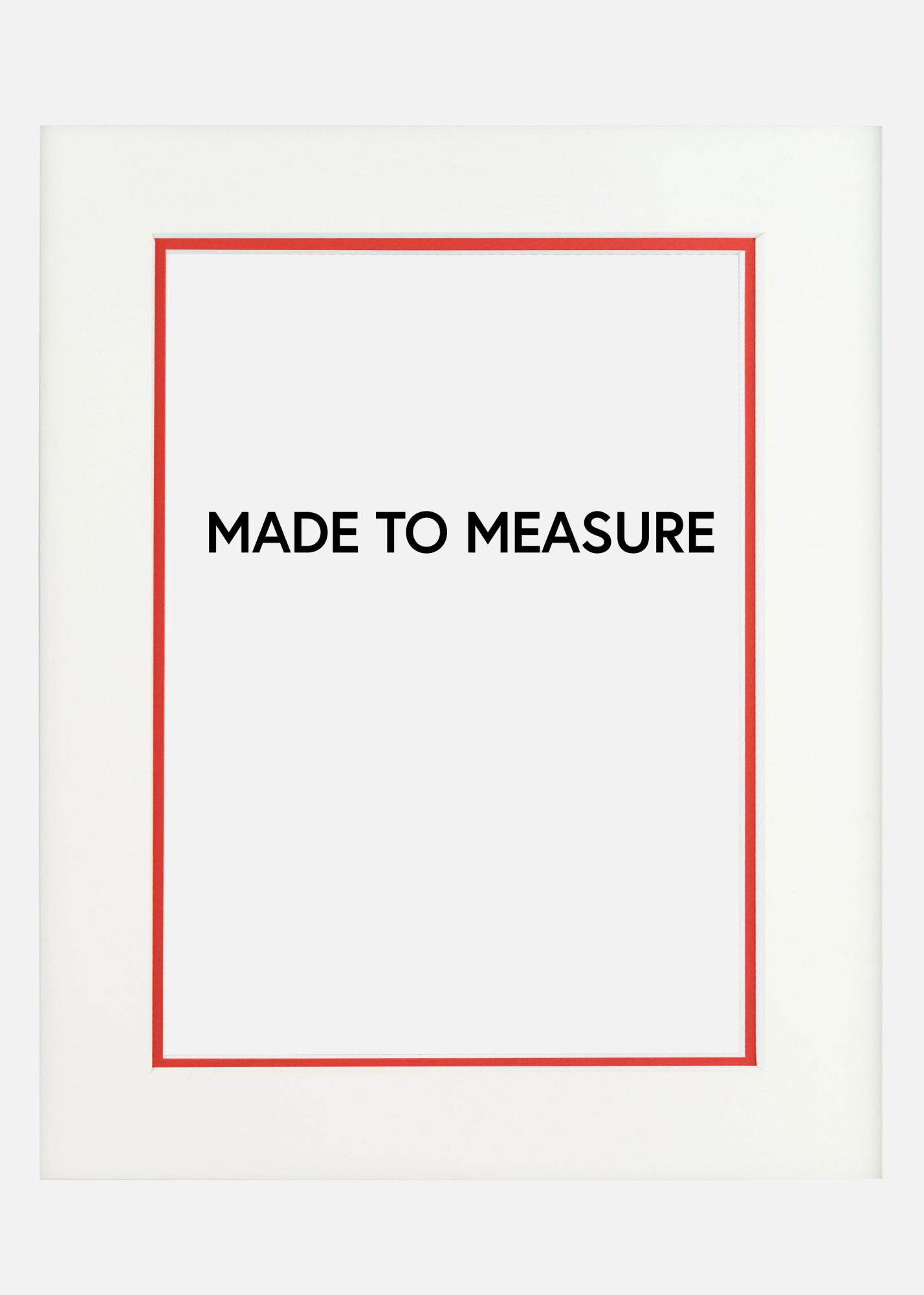 Ειδικά προσαρμοσμένο passepartout σε δύο στρώσεις με ένα λευκό passepartout ως βάση και ένα κάτω στρώμα σε κόκκινο που προσφέρει ένα χρωματιστό περίγραμμα 5 mm γύρω από την εικόνα. Ιδανικό όταν θέλετε να δημιουργήσετε μια εντυπωσιακή κορνίζα που αναδεικνύει την εικόνα σας και δίνει ένα επιπλέον βάθος στο θέμα. Όλα τα passepartouts μας έχουν κομμένες άκρες σε γωνία 45 μοιρών, προσφέροντας μια σοβαρή και επαγγελματική κορνίζα στις εικόνες σας.