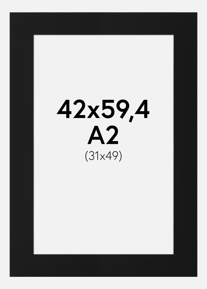 Αυτή η κομψή πασπαρτού σε μαύρο χρώμα είναι η τέλεια επιλογή για να δώσετε στις εικόνες και τα έργα τέχνης σας μια στυλάτη κορνίζα. Με μια λοξά κομμένη εσωτερική άκρη και μια λευκή βάση, δημιουργείται μια διακριτική αντίθεση που προσδίδει βάθος και κομψότητα στο μοτίβο σας. Η πασπαρτού είναι σχεδιασμένη να ταιριάζει σε εικόνες με μέγεθος 32x50 εκ., ενώ το εξωτερικό μέγεθος είναι 42x59.4 εκ., που αντιστοιχεί στο μέγεθος A2.