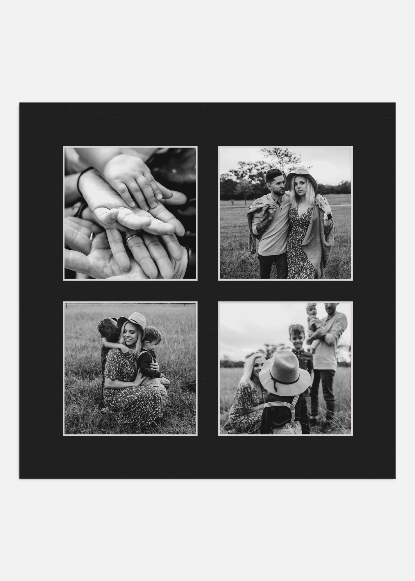 Χωρίς οξύ μαύρο collage passepartou με κομμένες λευκές άκρες υψηλής ποιότητας. Η passepartou έχει χώρο για 4 εικόνες. Ιδανικό όταν θέλετε να φτιάξετε το δικό σας προσωπικό φωτοκολάζ.