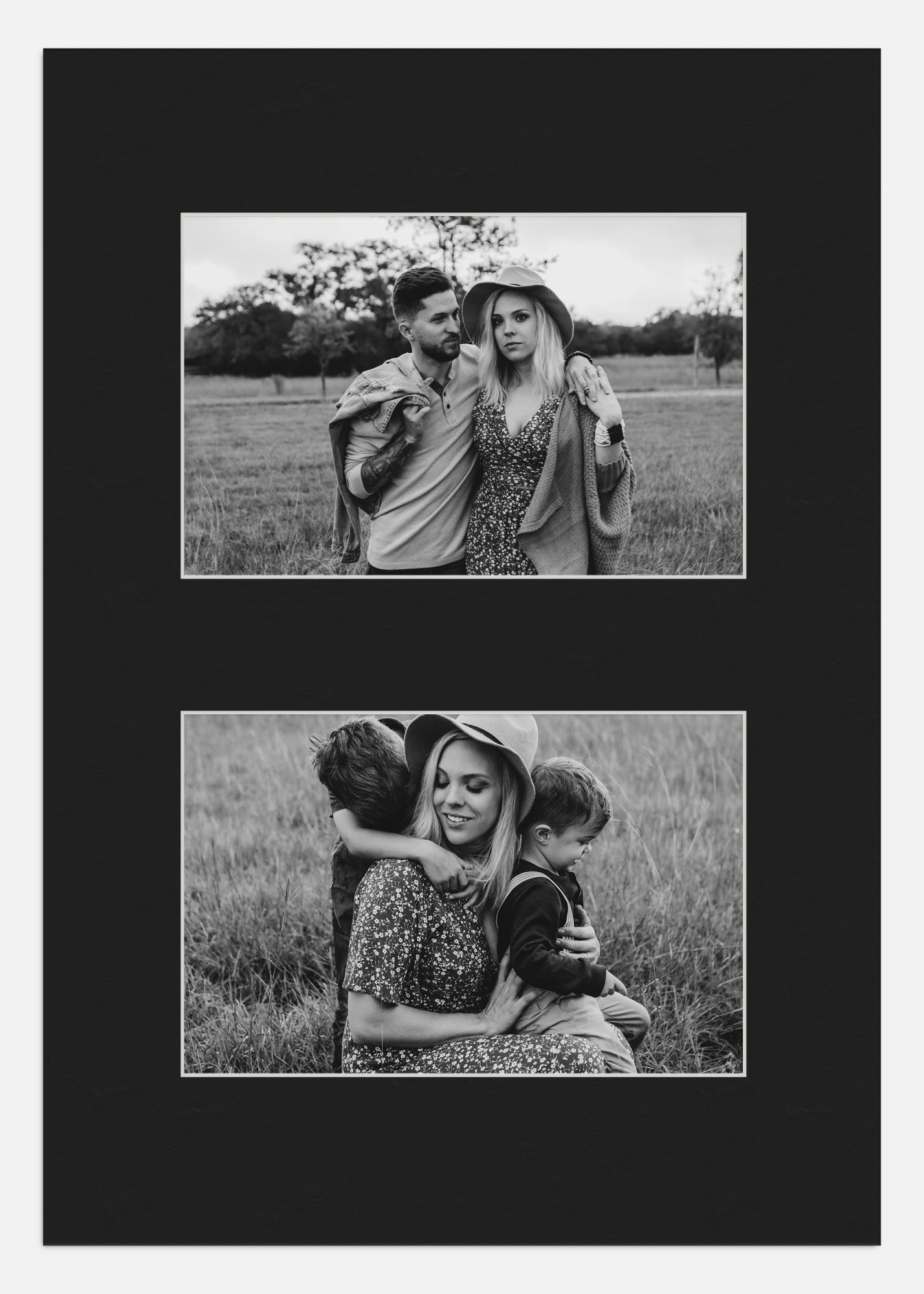 Μαύρο χωρίς οξέα κολλάζ passepartout με λευκές λοξοτομημένες άκρες υψηλής ποιότητας. Στο passepartout υπάρχει χώρος για 2 εικόνες. Ιδανικό όταν θέλετε να δημιουργήσετε το δικό σας φωτογραφικό κολλάζ.