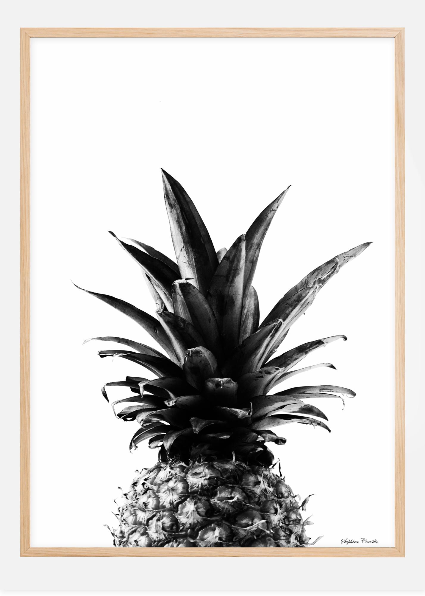 Μια φωτογραφική αφίσα σε ασπρόμαυρο με έναν ανανά πάνω σε ένα λευκό φόντο, φωτογραφημένη από την Saphira Consilio. Ένας κομψός πίνακας σε μοντέρνο σχέδιο, εύκολο να συνδυαστεί με άλλες αφίσες σε έναν μεγαλύτερο τοίχο με πίνακες.