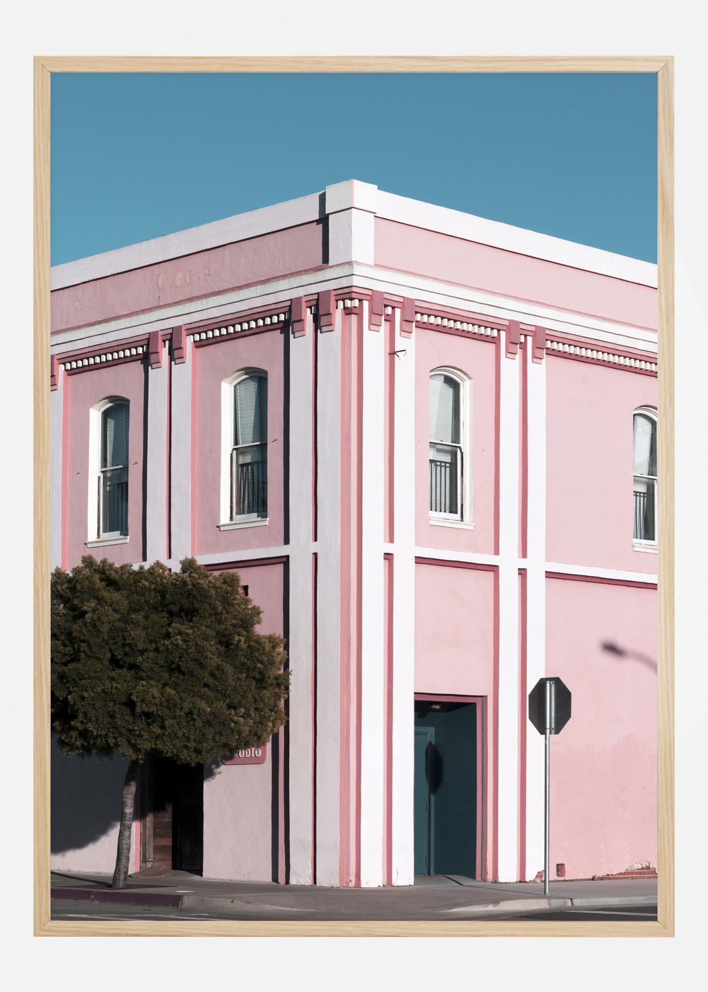 Μια όμορφη αφίσα με ένα ροζ διώροφο σπίτι κάτω από έναν καταγάλανο ουρανό. Χάρη στα έντονα, ζωηρά χρώματα προκαλεί μια ήρεμη αρμονική αίσθηση. Αριστερά του κτιρίου στέκεται ένα μικρό θαμνώδες δέντρο που σχεδόν μπλοκάρει την είσοδο στο κτίριο. Προσθέστε μια πινελιά χρώματος στο σπίτι σας με αυτή την υπέροχη εκτύπωση.