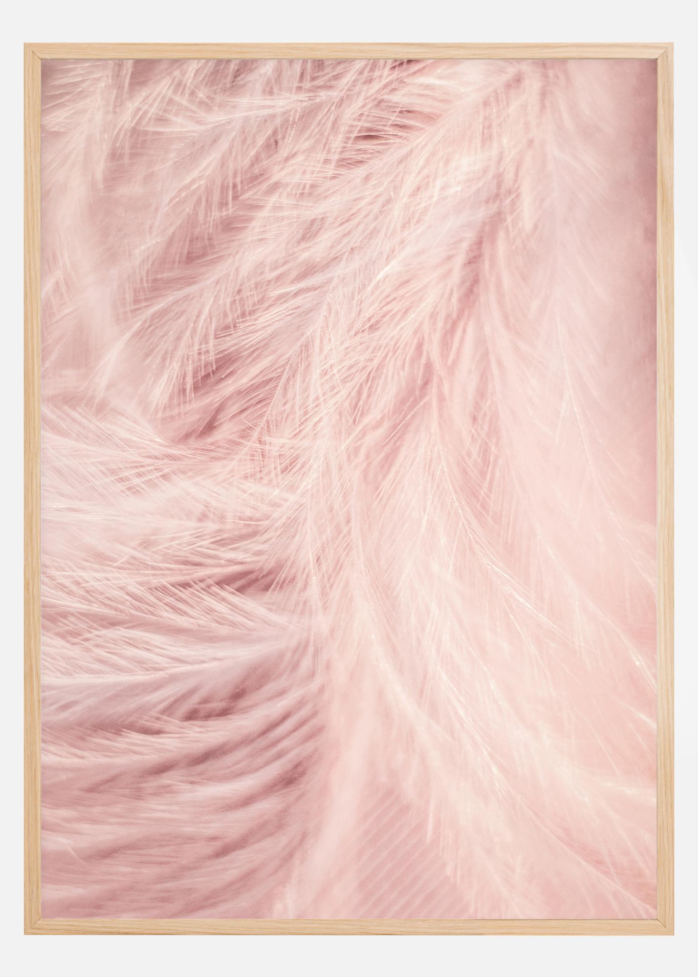 Μια υπέροχη αφίσα κοντινής λήψης με απαλό ροζ φτερά. Χάρη στο έντονο φως που φωτίζει τα φτερά, δεν είναι σαφές αν τα φτερά είναι πράγματι ροζ ή λευκά. Είναι ένα ροζ φως που αντανακλά στα φτερά; Κρεμάστε την στο σπίτι σας για μια απαλή ζεστή αίσθηση.
