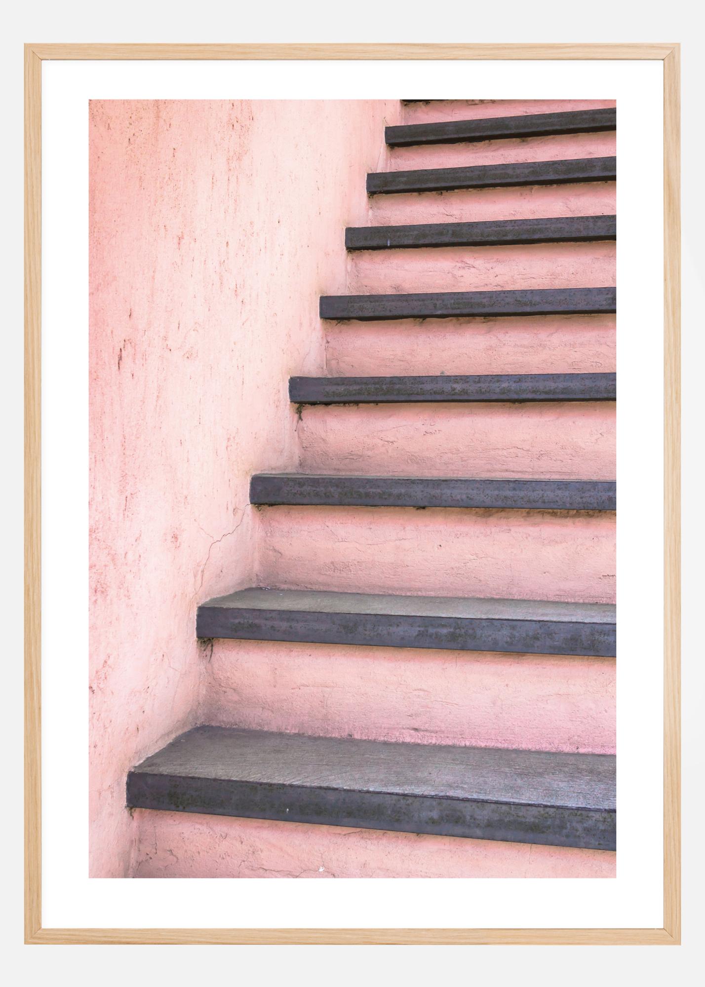 Μια φωτογραφία μιας σκάλας με υπέροχες αντιθέσεις ροζ παστέλ και γκρι σκυροδέματος. Μια απλή και κομψή αφίσα, ιδανική για να συνδυαστεί με άλλες αγαπημένες σε έναν μεγαλύτερο τοίχο με πίνακες. Ταιριάζει στους περισσότερους σπιτικούς και διακοσμητικούς στυλ.