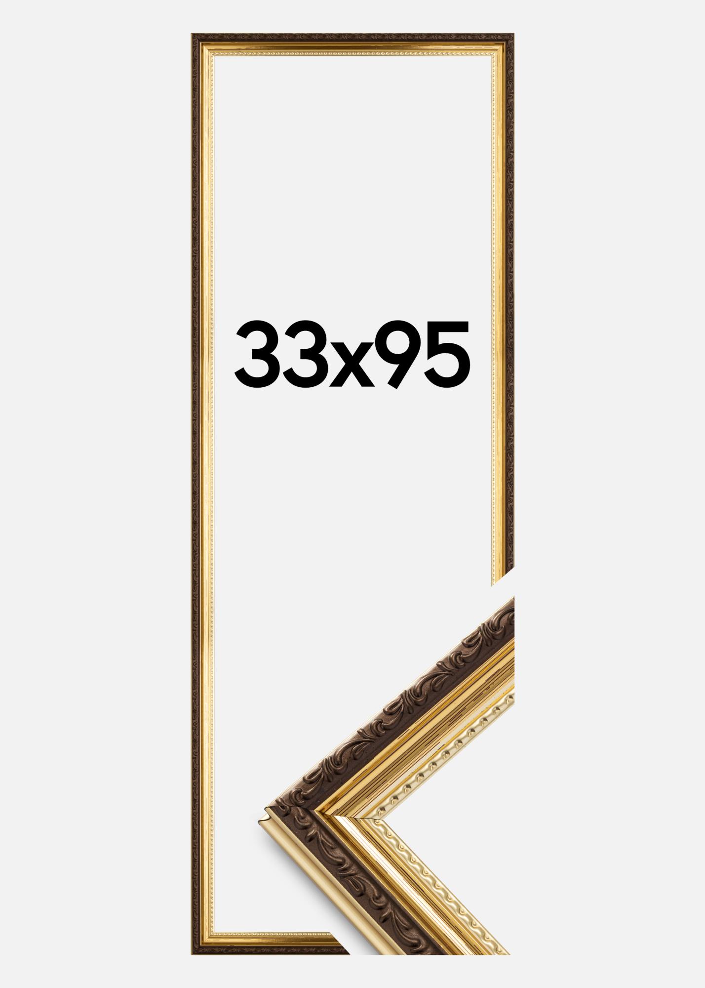 Ψάχνετε για μια όμορφα διακοσμημένη κορνίζα σε παλαιότερο στυλ; Το Abisko ακρυλικό γυαλί Guld είναι ένα στιβαρό χρυσό πλαίσιο με απίστευτα κομψά διακοσμητικά στοιχεία. Η λωρίδα του πλαισίου, με πλάτος 25 χιλιοστά, έχει μια λαμπερή χρυσή απόχρωση με μια διακοσμημένη καφέ μπορντούρα στο κέντρο. Ακόμα και το χρυσό μέρος είναι διακοσμημένο, με ένα κυματιστό μοτίβο κοντά στο γυαλί.